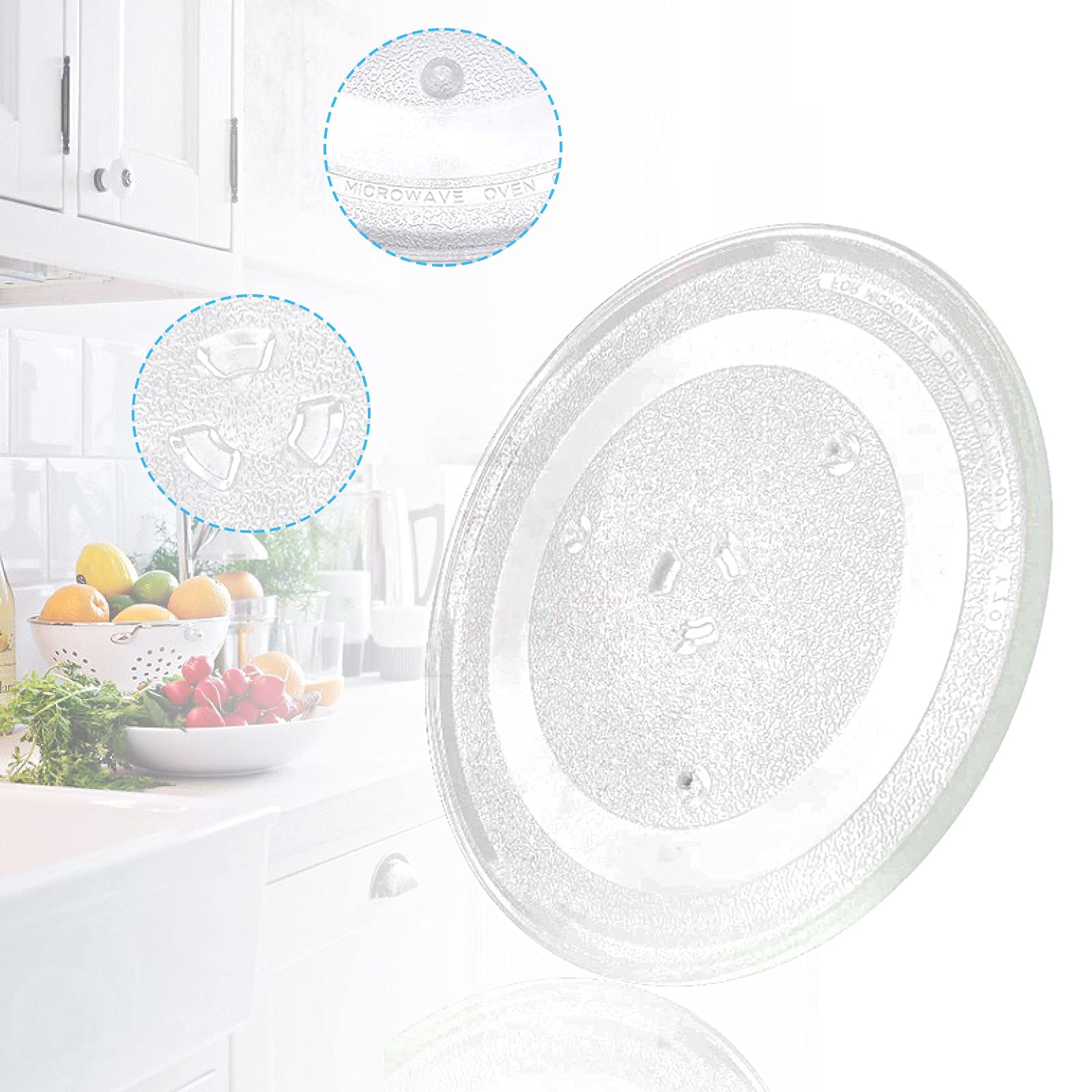 ♾[ENSURE PROPER COMPATIBILITY]:The microwave plate is measured 11.25" in diameter and has three grooves in the bottom of the glass plate. Check your bushing coupler (the center piece of the turning plate) and make sure it has three notches.Measure the inside of the microwave to make sure it fits our 11 1/4" microwave glass plate