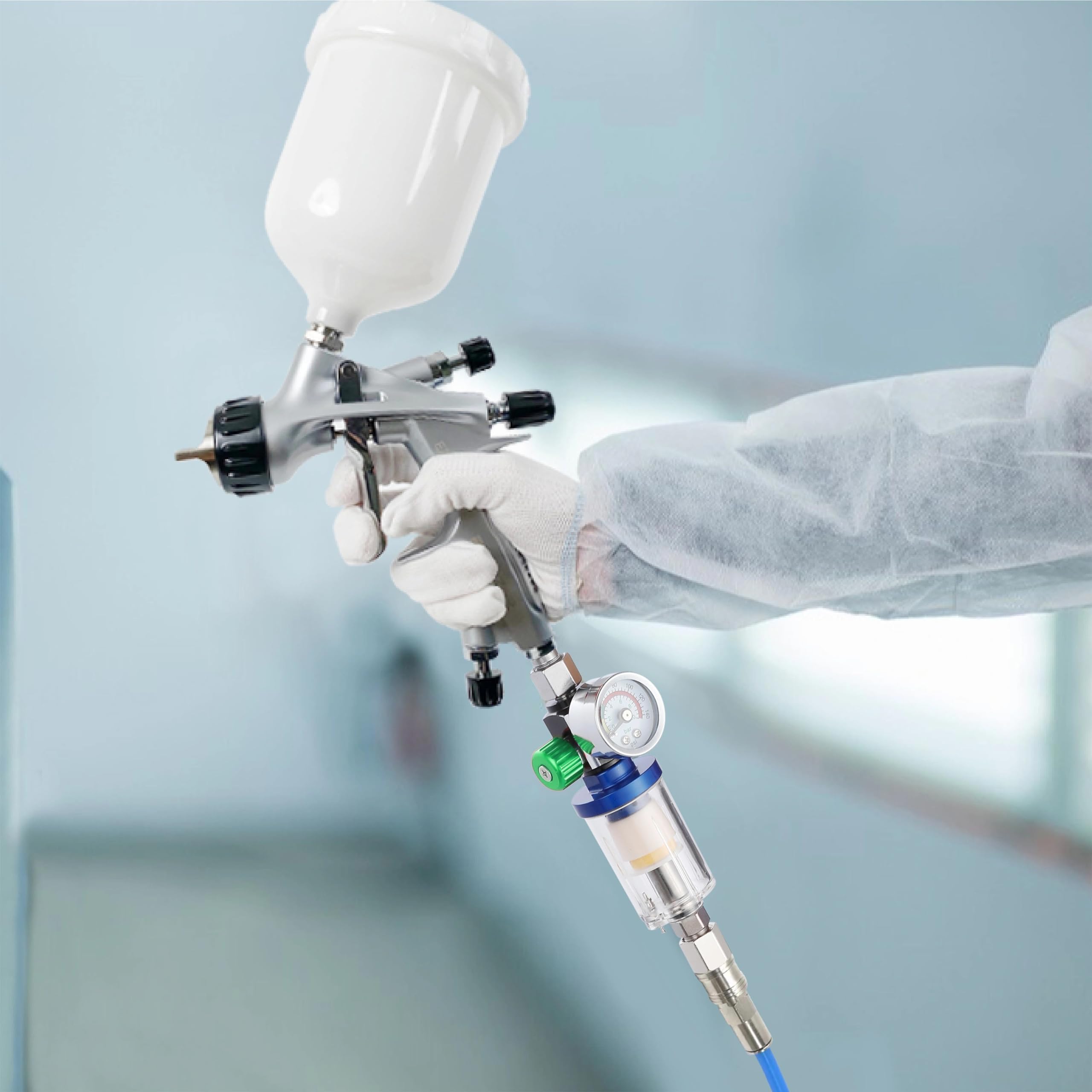 The air adjusting regulator valve is suitable for most spray tools and airlines, such as spray paint gun, air pressure cleaner, airline dryer and so on, which can be applied as a compact filter for air spray guns