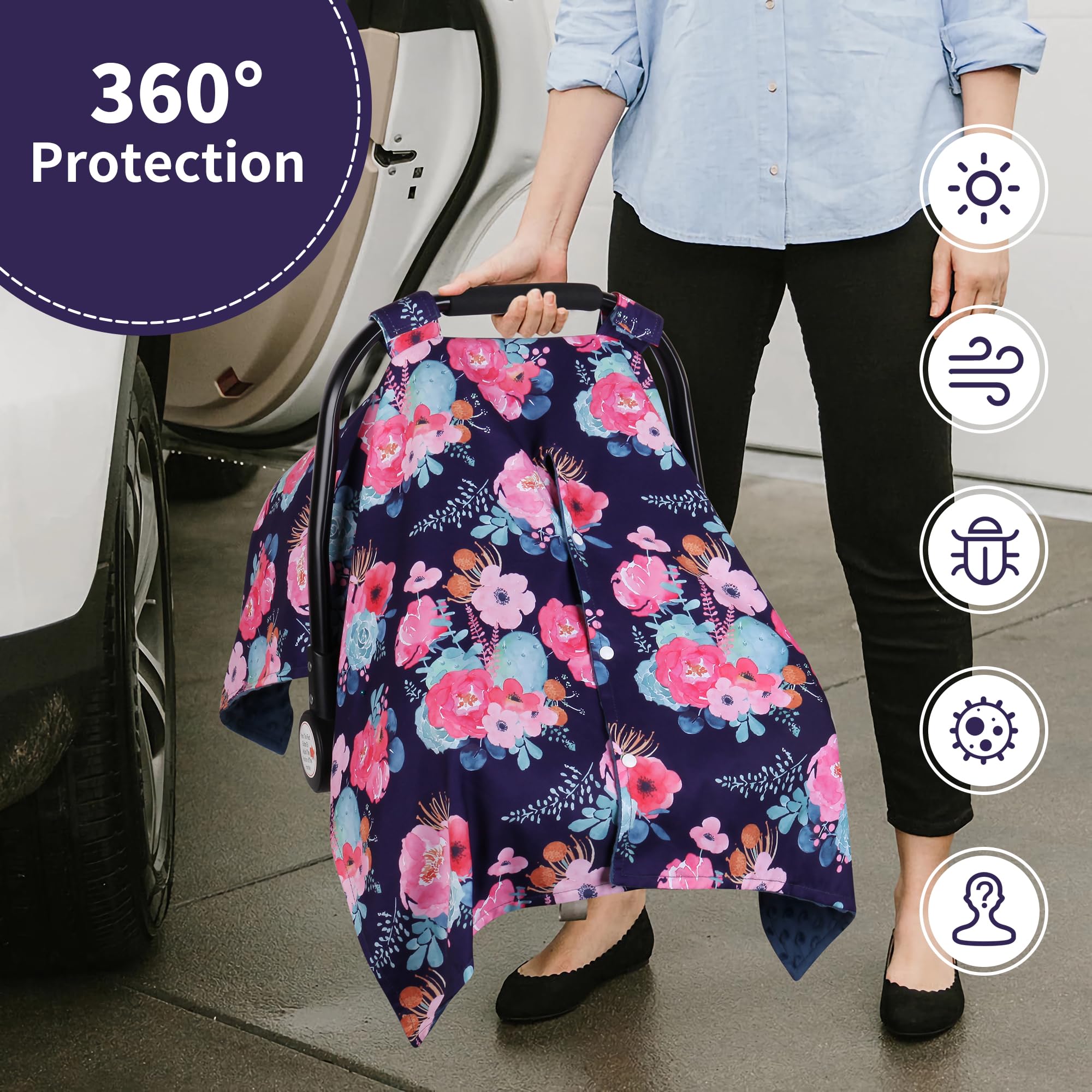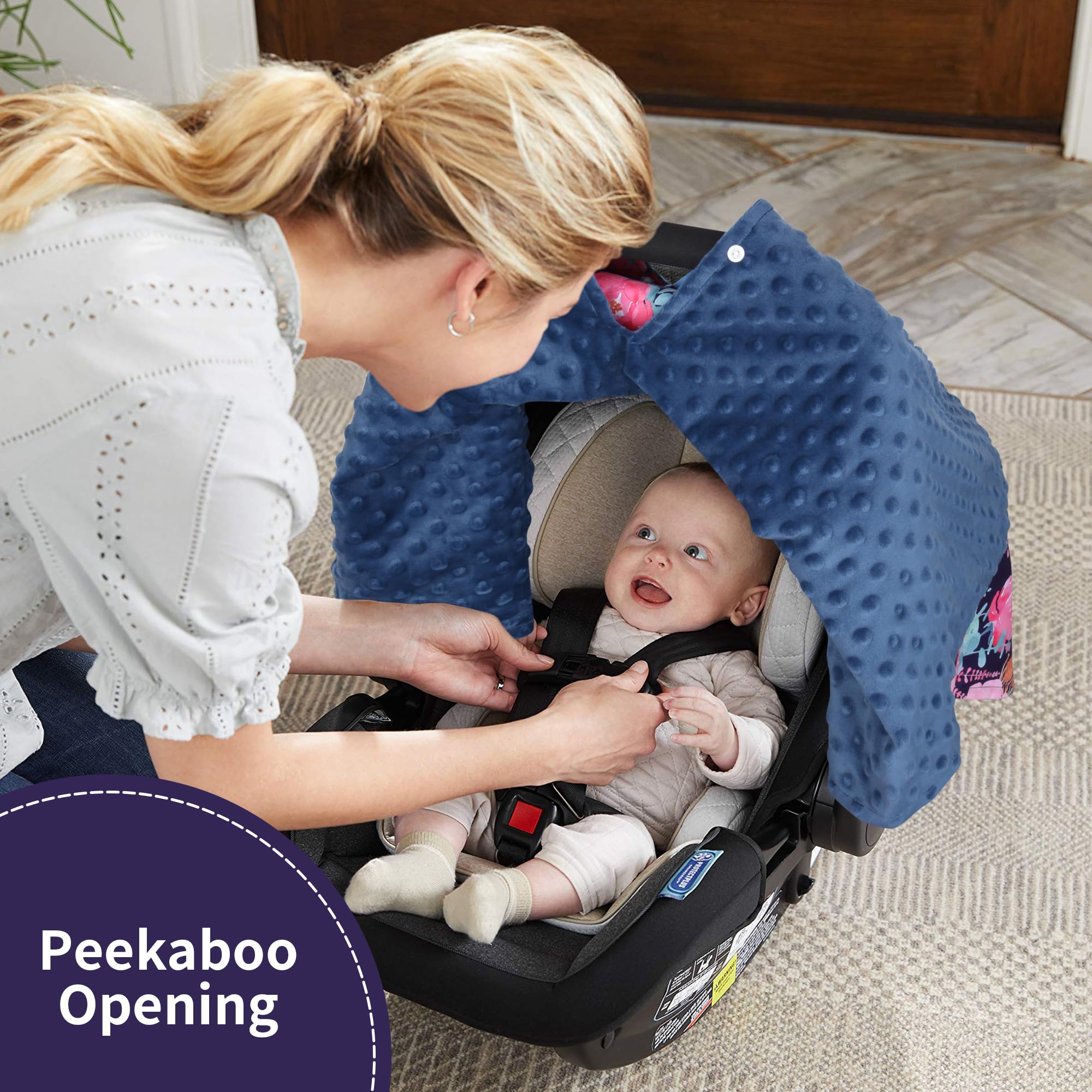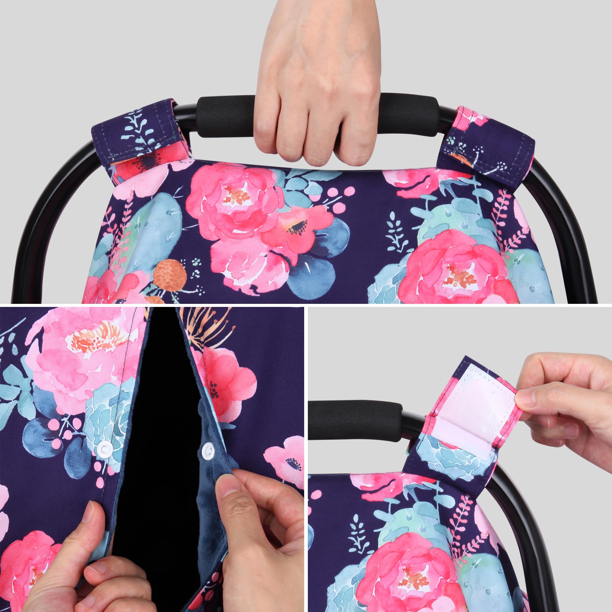 EASY TO USE: The durable Velcro straps are positioned on the carseat canopy for the ability to secure to baby carrier handle quickly. It's easily install and remove. Extra large universal size to fit all multiple brands of infant car seats or strollers