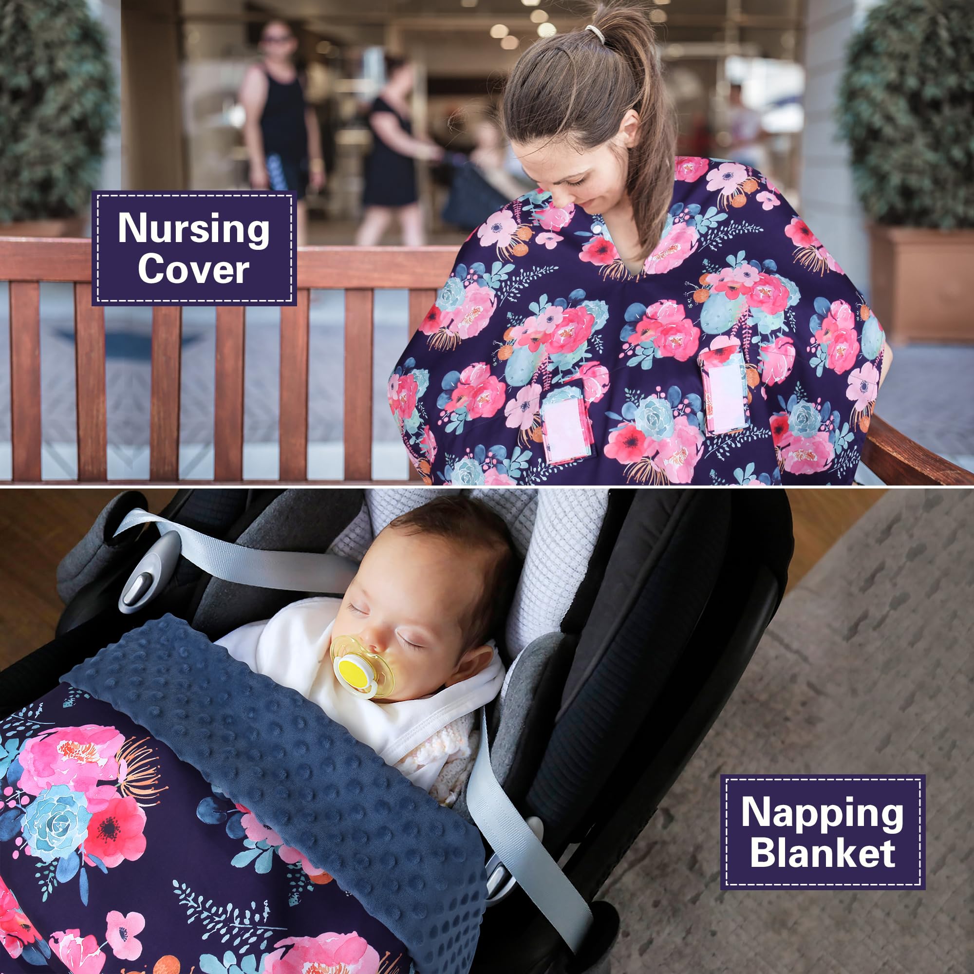 VERSATILE: Rquite baby carrier cover is a newborn essentials that goes from canopy to mom nursing cover quickly. When you take the canopy off, it doubles as a baby blanket or play mat, its a win-win. There are many more uses waiting for you to discover