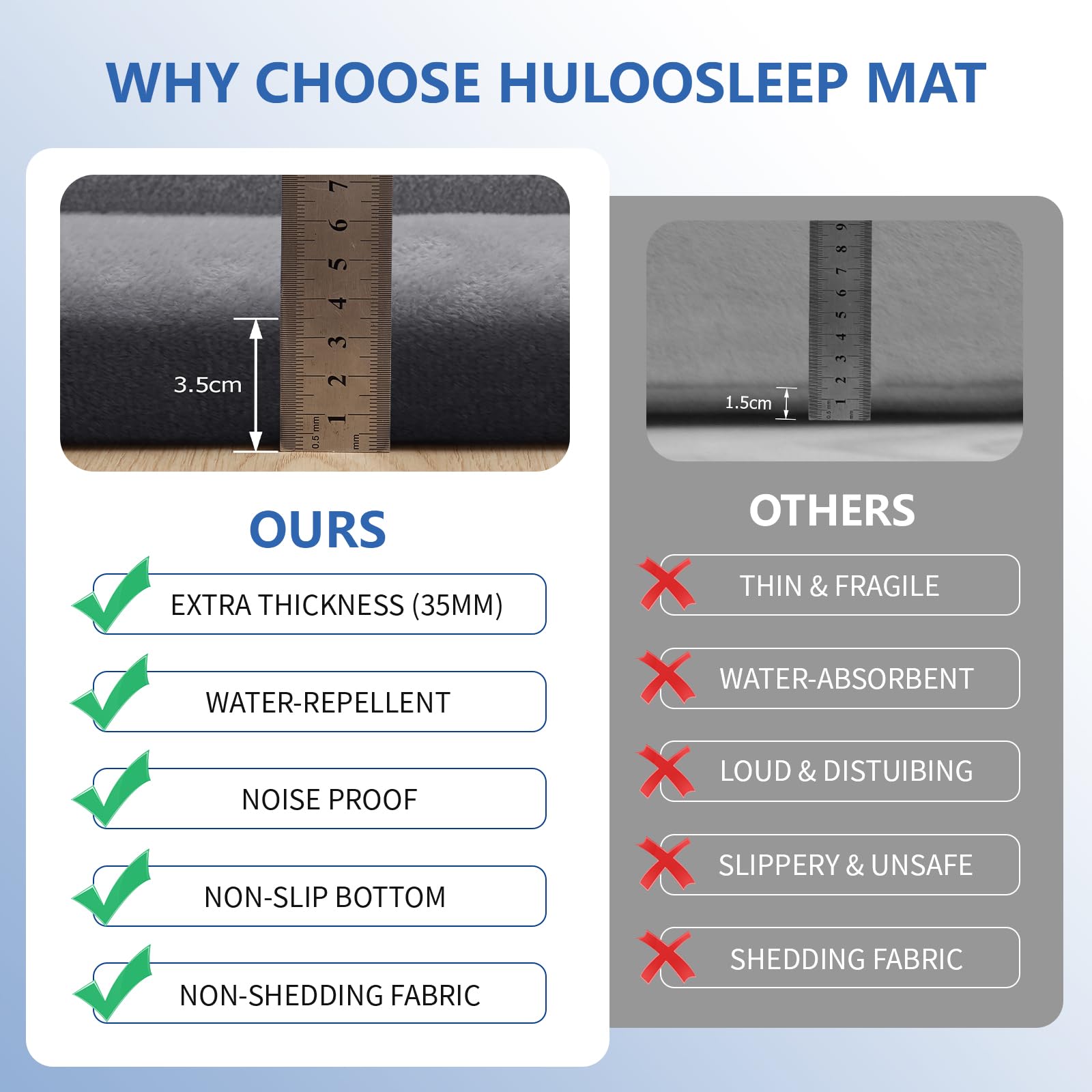【Extra Thick & Non-Shedding Play Mat】Crafted with 1.3-inch slow-rebound memory foam, this tatami mat offers superior cushioning and protection for babies and toddlers. Made from 100% non-shedding coral velvet, it provides a soft, noise-reducing, and slip-resistant surface for safe play, crawling, and tummy time. It also protects hardwood floors while enhancing durability and aesthetic appeal.