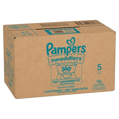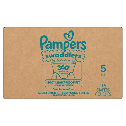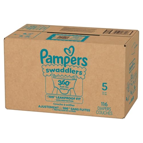 The Pampers Swaddlers 360° comfy, dry protection you know and love just got updated—with E-Z Off tabs for even easier changes. Featuring ultrasoft absorbent layers and Dual-Leak Guard Barriers that help protect where leaks happen most, these diapers provide up to 100% leakproof skin protection for your little one! From the #1 Pediatrician Recommended Brand*, Pampers Swaddlers 360° are designed to support your toddler’s movement from crawling age to standing age with a 360-degree stretchy waistband. The new EZ-off tabs make changes stress-free and mess-free—whether your little one is lying down or standing up—just tab off, wrap up, and pull on a fresh diaper pant. Swaddlers 360° toddler diapers offer trusted protection you can count on: they’re hypoallergenic, dermatologically tested, and free of parabens and latex. Plus, Dual LeakGuard Barriers and a blowout barrier help prevent up to 100% of leaks—even blowouts! To find your baby’s ideal Comfy Dry Fit, just measure by weight and reference our available baby diaper sizes: • Size 3 diapers (16–28 lbs.) • Size 4 diapers (22–37 lbs.) • Size 5 diapers (27+ lbs.) • Size 6 diapers (35+ lbs.) • Size 7 diapers (41+ lbs.) Pair Pampers Swaddlers 360° with Pampers Sensitive Baby Wipes to help make changes quick, easy, and gentle on your baby’s skin. *Based on 2021 survey of U.S. and Canadian pediatriciansSwaddlers 360° pull on diapers offer our best skin protection for your baby! The waistband stretches comfortably around your baby's waist and adapts to their every move for a soft and comfy fit — no tape needed.