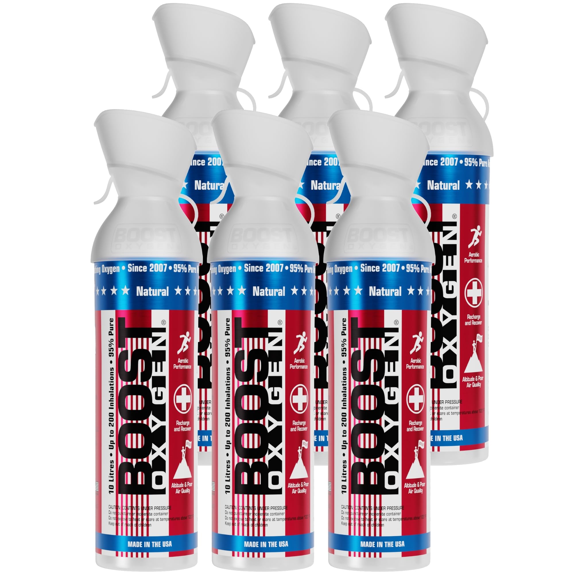 CONVENIENT, LIGHTWEIGHT, AND RECYCLABLE: this 6-pack of Boost Oxygen comes with portable oxygen canisters for on-the-go lifestyles that are completely recyclable. Each canister contains 10 liters.