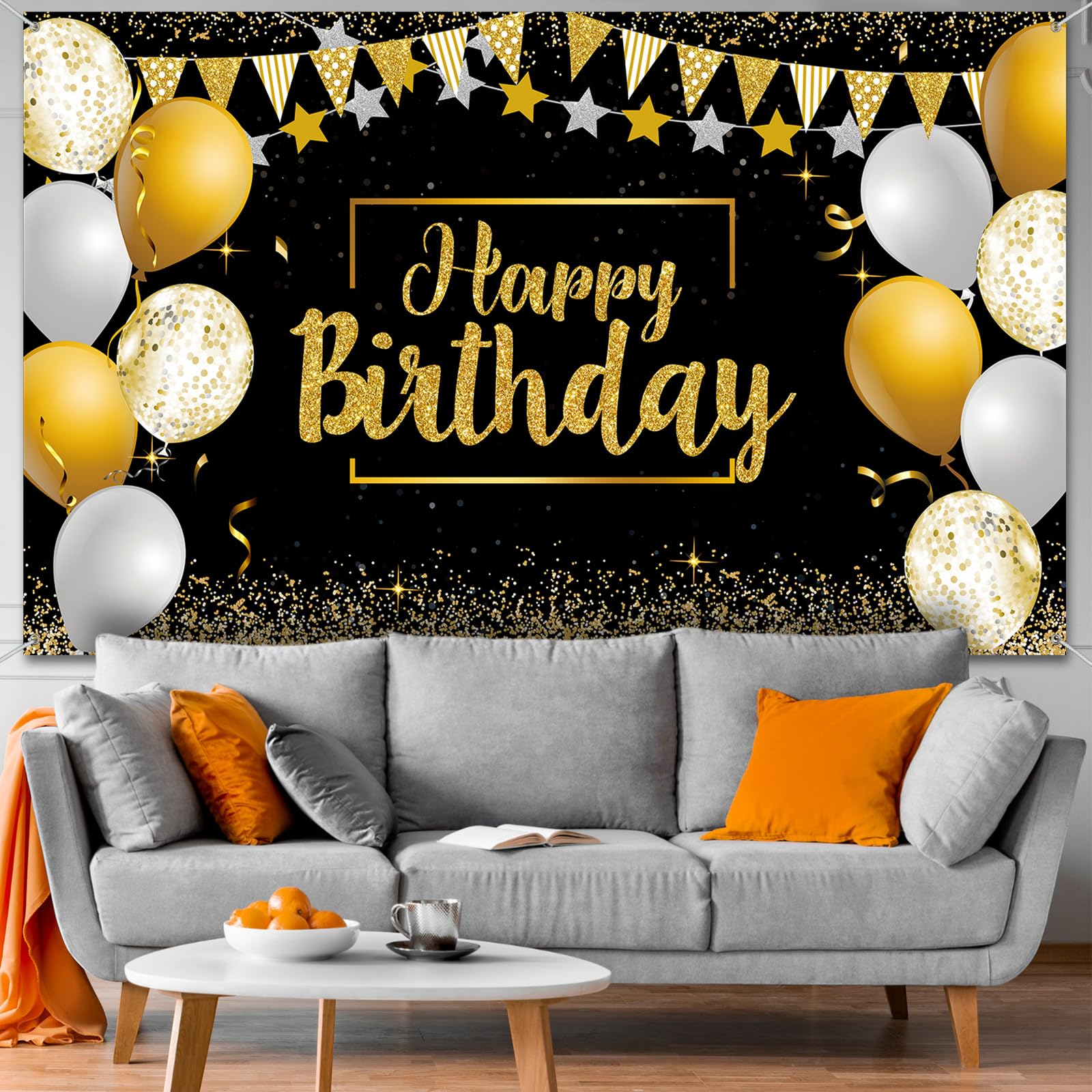 Package Content: you will get 1 pcs happy birthday sign backdrop, designed in black and gold, and printed with classic patterns of balloons, gifts, glittery stars, adding an impressive touch to the birthday party, serving as an ideal decoration for creating a birthday memorable atmosphere
