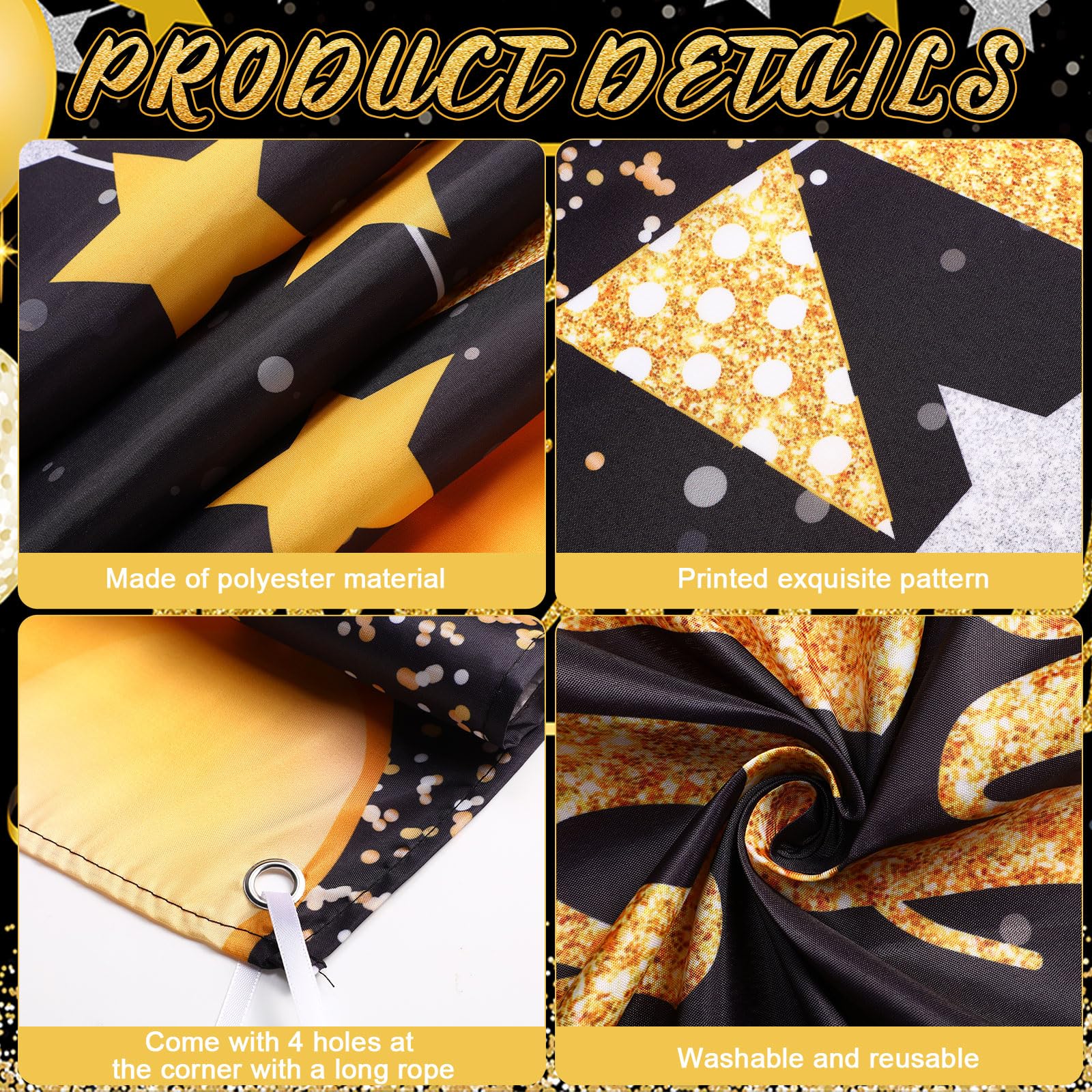 Versatile Use: the black and gold birthday backdrop decorations enhance any birthday party, ideal for various occasions, including themed parties, product photography, and wall decorations; You can also write some words on it to make a deep impression on others