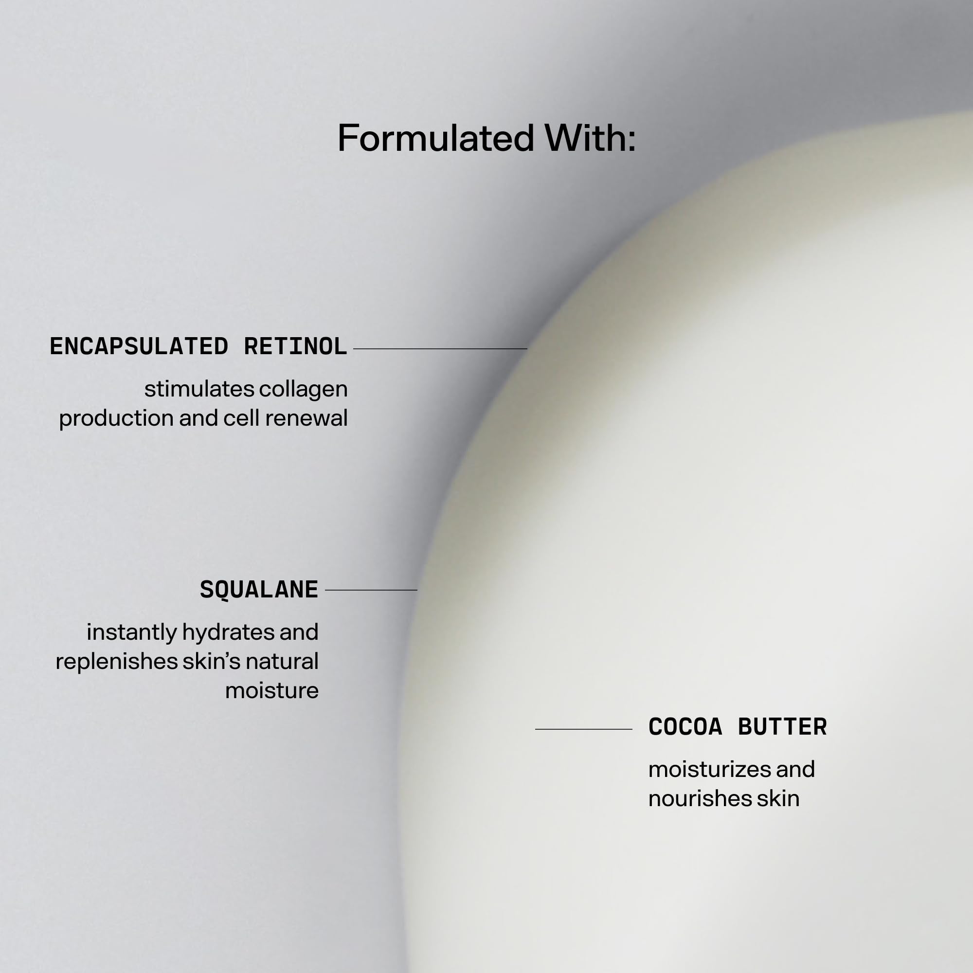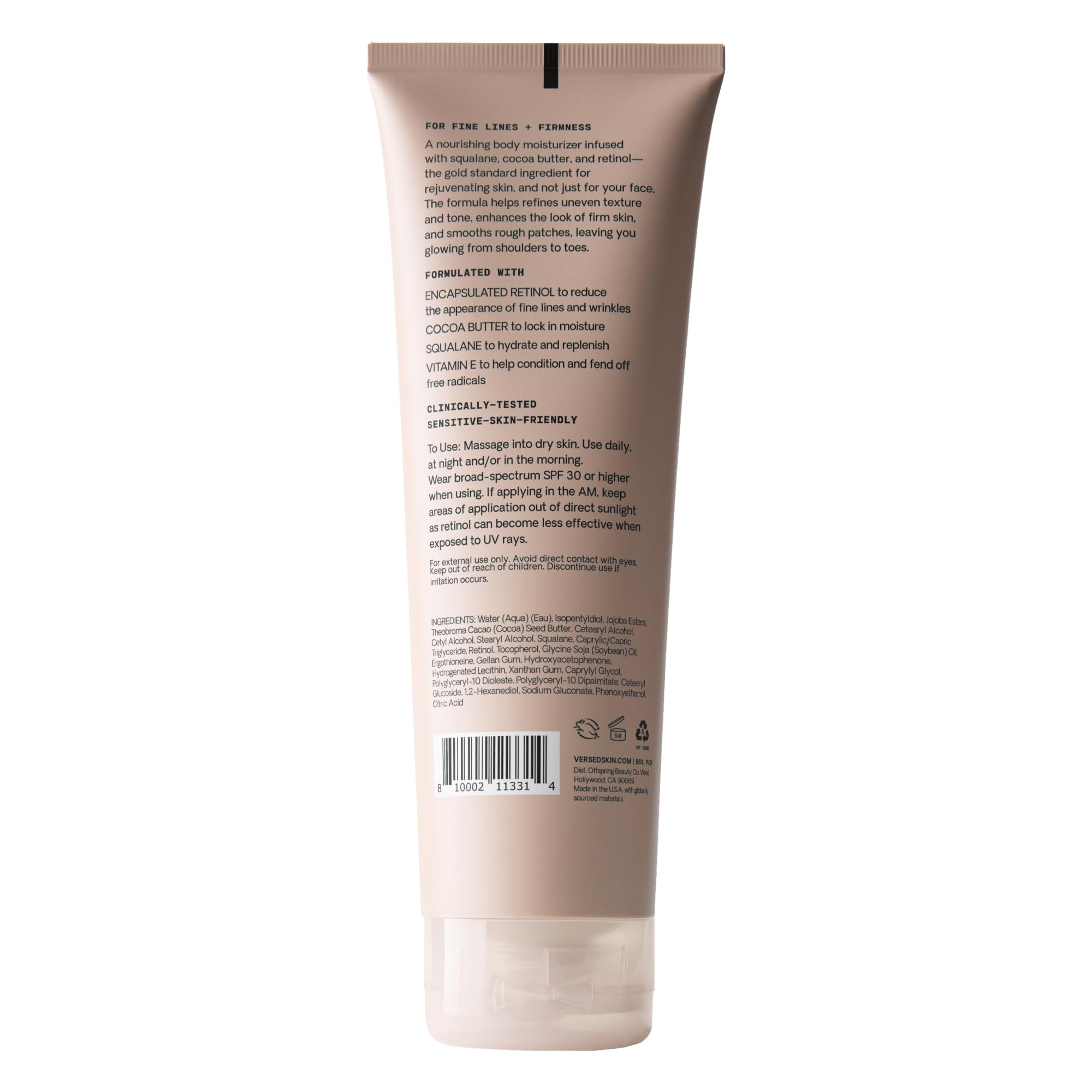 Retinol Body Lotion - With pure retinol, nourishing cocoa butter, and moisture-replenishing squalane, this retinol body lotion repairs more than dryness. It helps firm skin, smooth texture and brighten dullness.