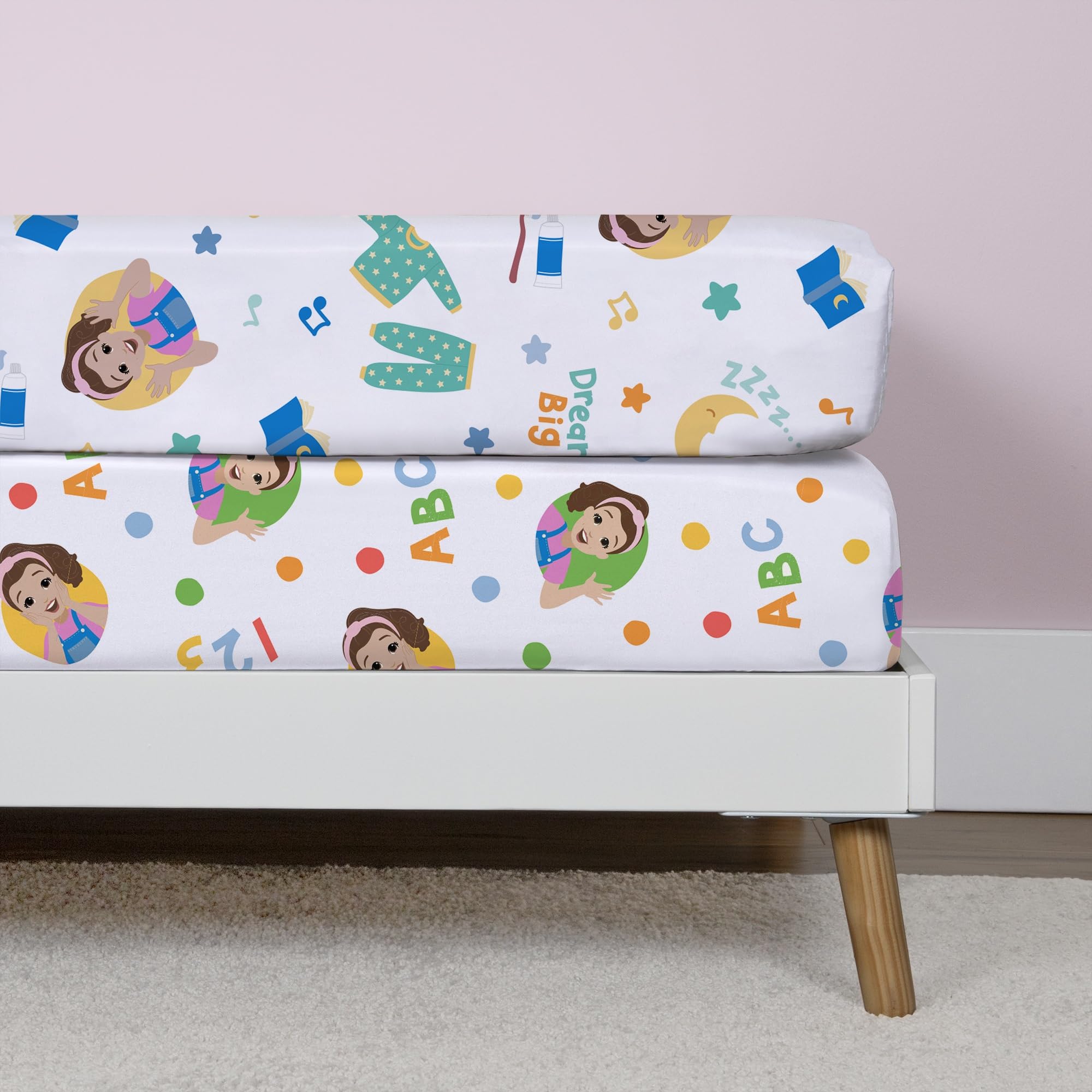 SUPPORTS A COMFORTING BEDTIME ROUTINE: Use the Ms. Rachel sheet set to create a calm, loving sleep routine. Sing “I am safe in my bed, I can rest my sleepy head” as a soothing cue to help your child feel safe, connected, and ready for rest.
