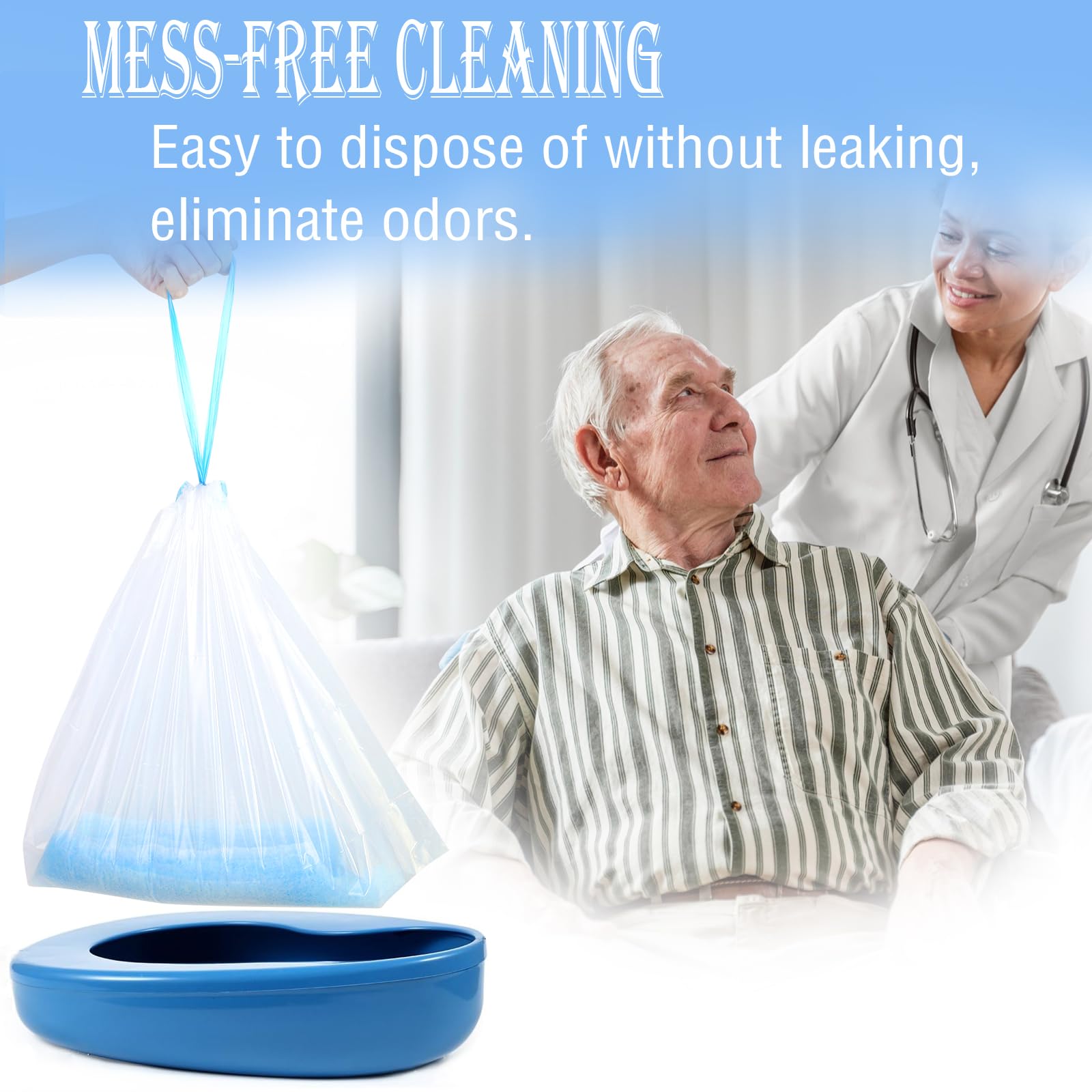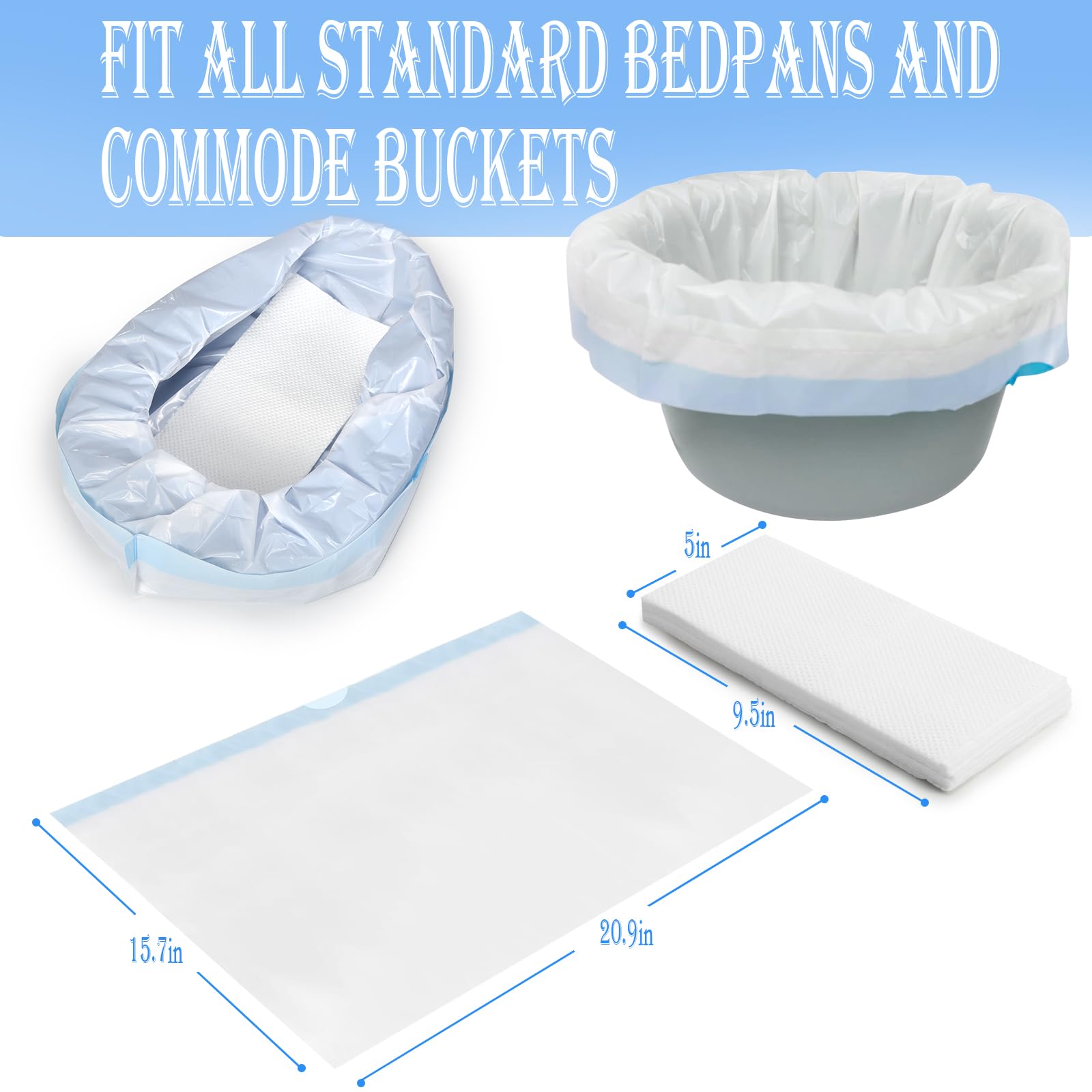 【Leakproof & Anti-Spill & Odor-Resistant】-The bedpan liners disposable are made with thick and strong material, no worry for leaks. The super absorbent pads turn liquid (up to 35 oz /1000ml) into a gel within seconds while reducing odors, spills and splashes.