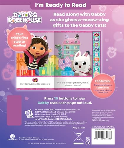 Read along with Gabby as she gives a-meow-zing gifts to the Gabby Cats! Press 10 buttons to hear Gabby read each page out loud. Simple sentences, large type, and expressive narration make it easy for beginning readers to follow along!