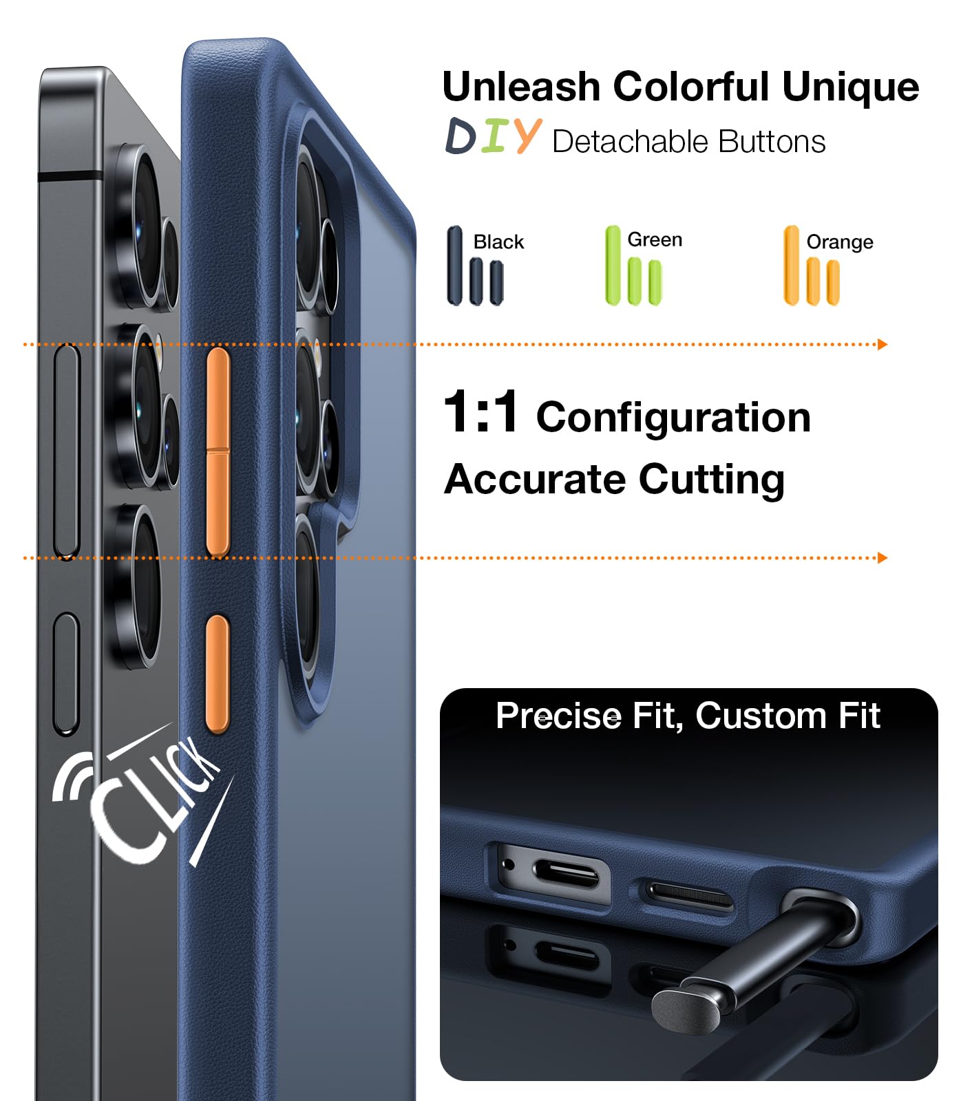 [Independent Buttons, Perfect 1:1 Fit] The colorful independent buttons offer effortless pressing and swift responsiveness, delivering exceptional tactile feedback for an enhanced user experience. Fits your phone like a glove, ensuring snug protection with effortless clicking. With two complimentary sets of colored buttons, you can express your individuality. Your Detachable Colorful Buttons Customize Your Unique Style.