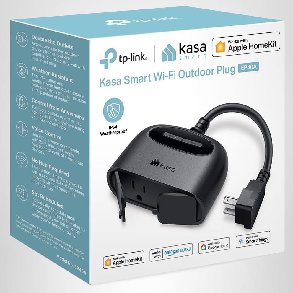 Kasa Apple HomeKit Outdoor Smart Plug, 2 Sockets, IP64 Weather Resistance for Outdoor String Lights, Compatible with Siri, Alexa & Google Home, Long Wi-Fi Range, 2.4G Wi-Fi Only, ETL Certified (EP40A)