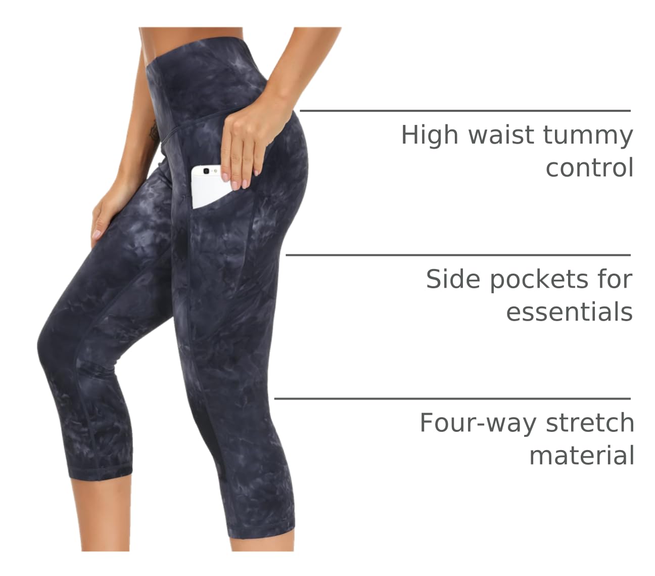 Comfortable High Waist: Wide Waist Elastic Waistband to Cover Navel Which provides Tummy Control and Would not Fall. Suitable for Capri, Workout, Fitness.