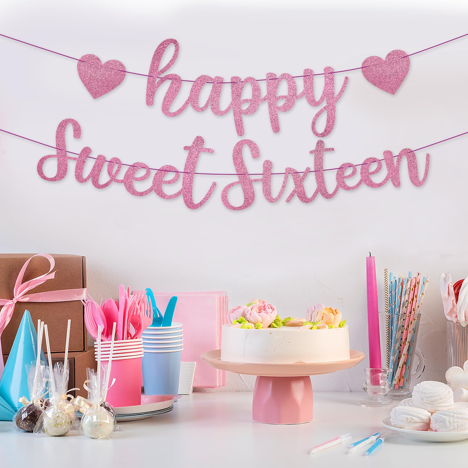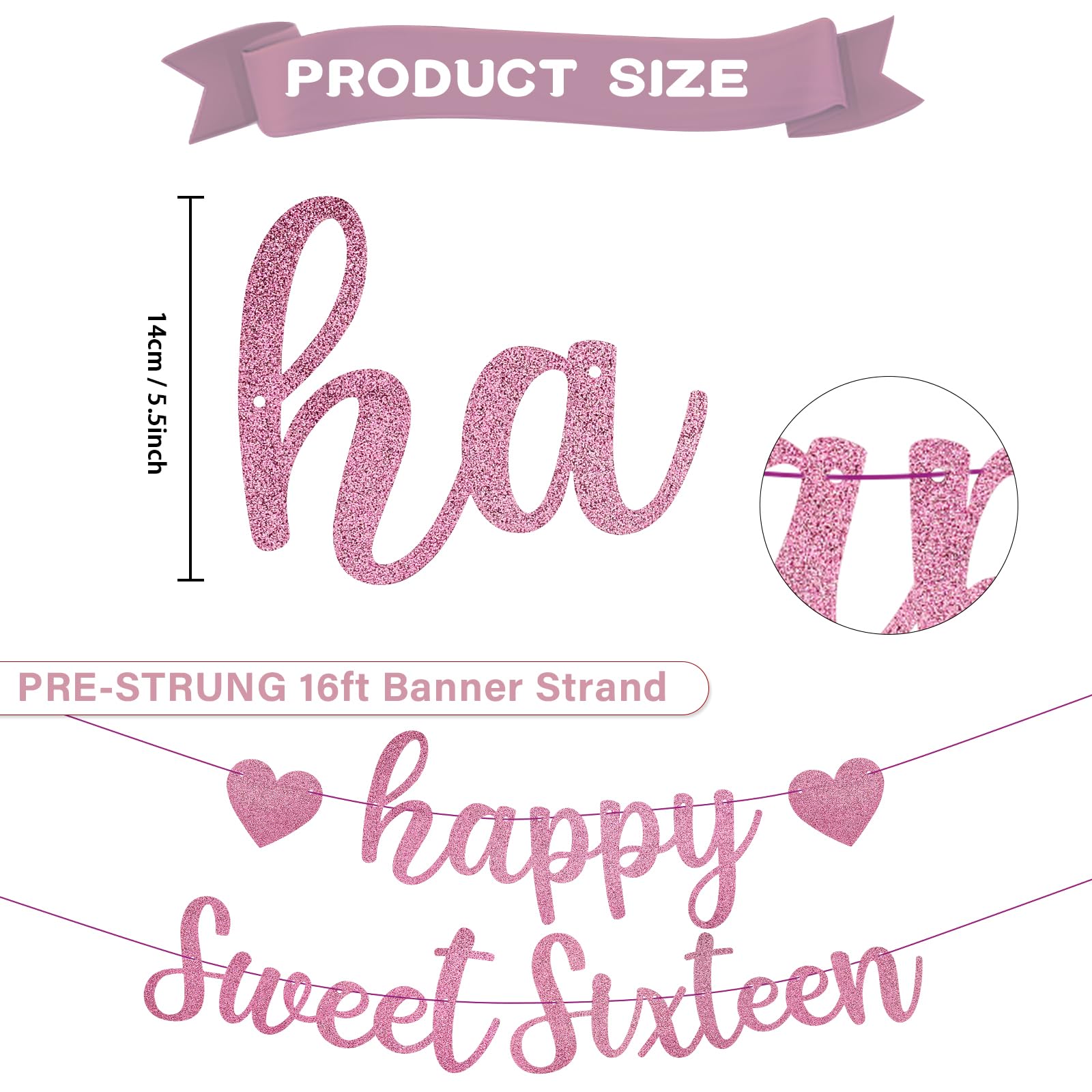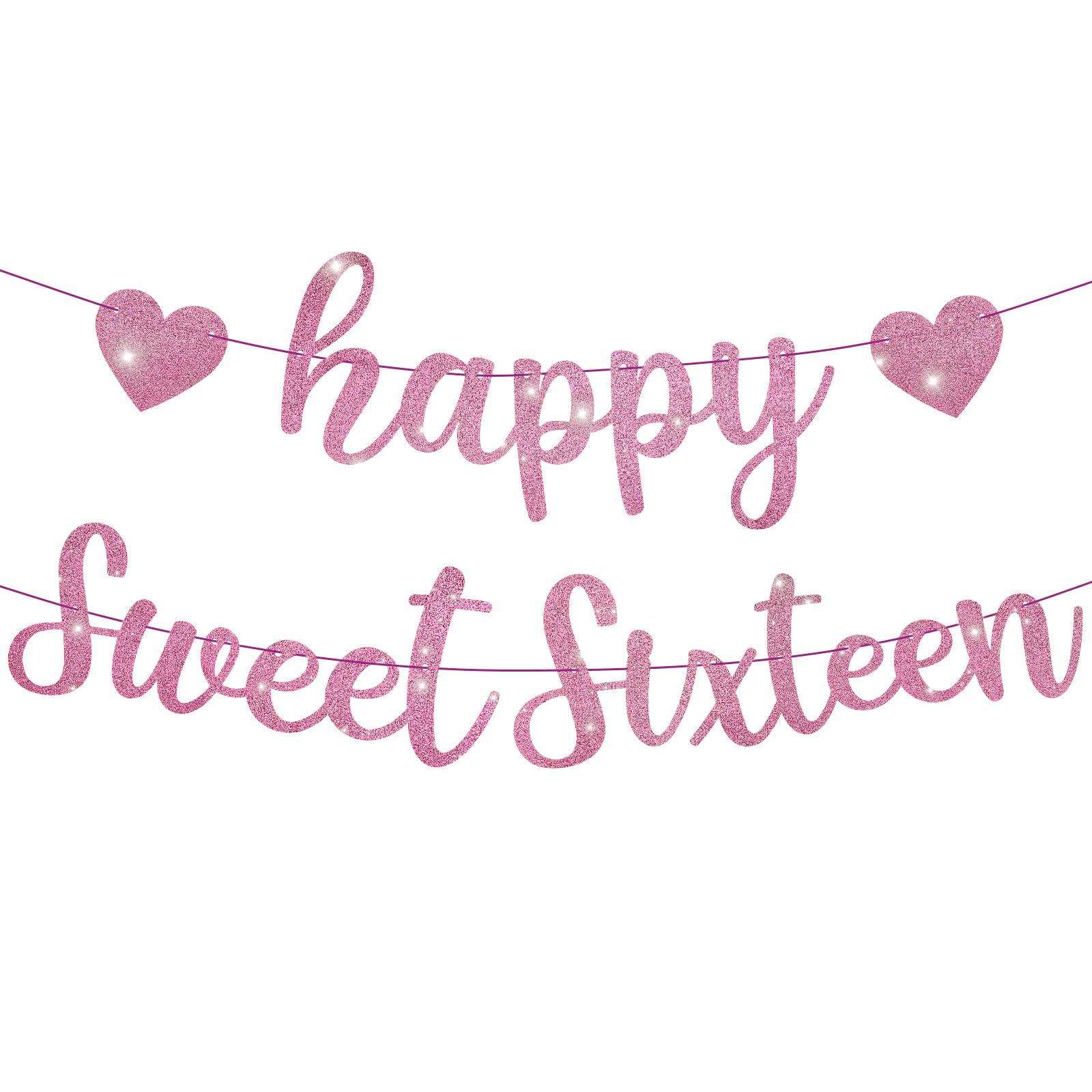 Material: Happy Sweet 16th birthday sign made of cardboard, decorated with clear letter, which is very durable and will not fade, reusable for your next party. no shedding glitter sets us apart from other birthday decorations for girl and will set your birthday celebration apart. This sweet 16 banner for girls work for any event space,They are very durable and can be reused. ou can easily add them to mantels, banisters, windows, dessert tables even use as a photo backdrop.