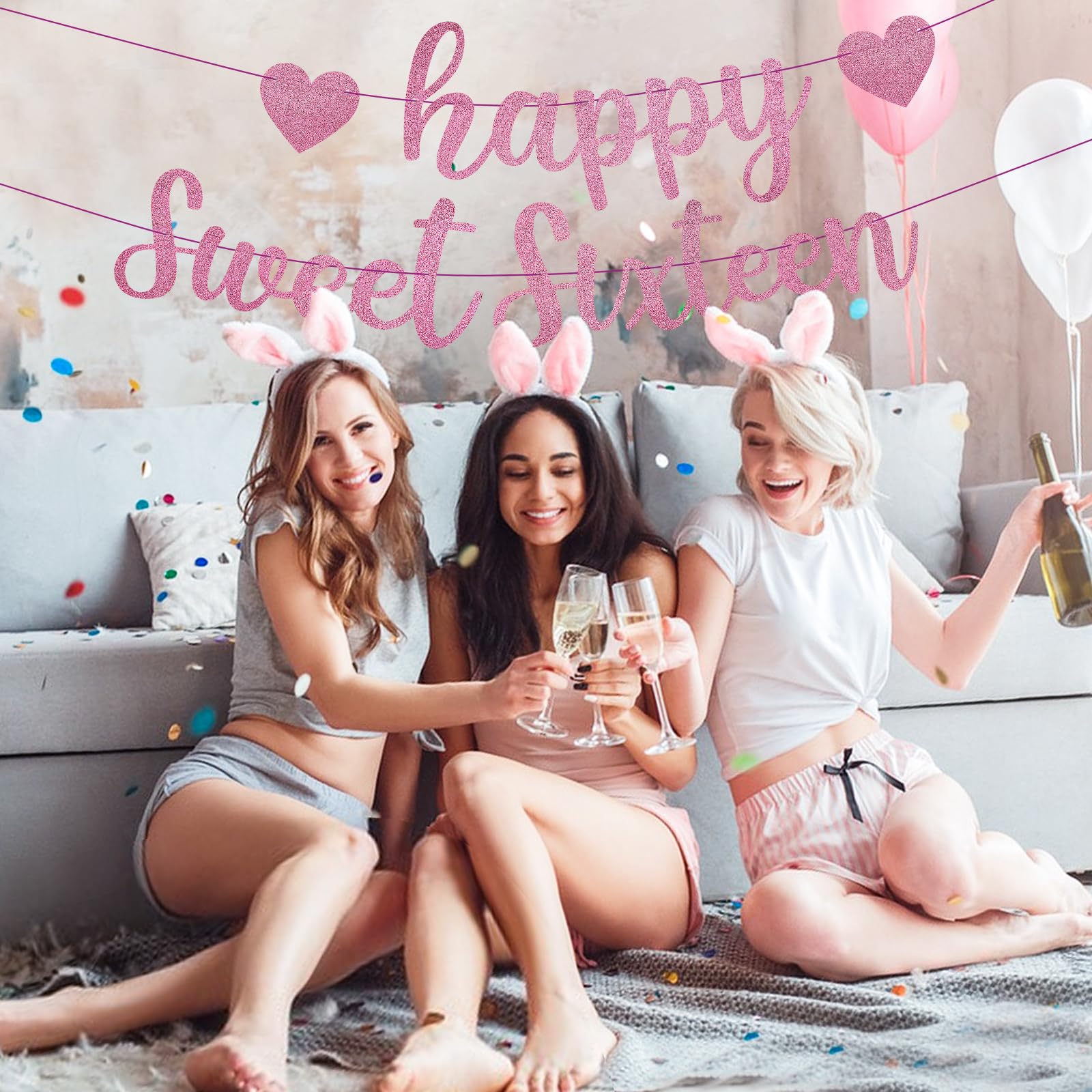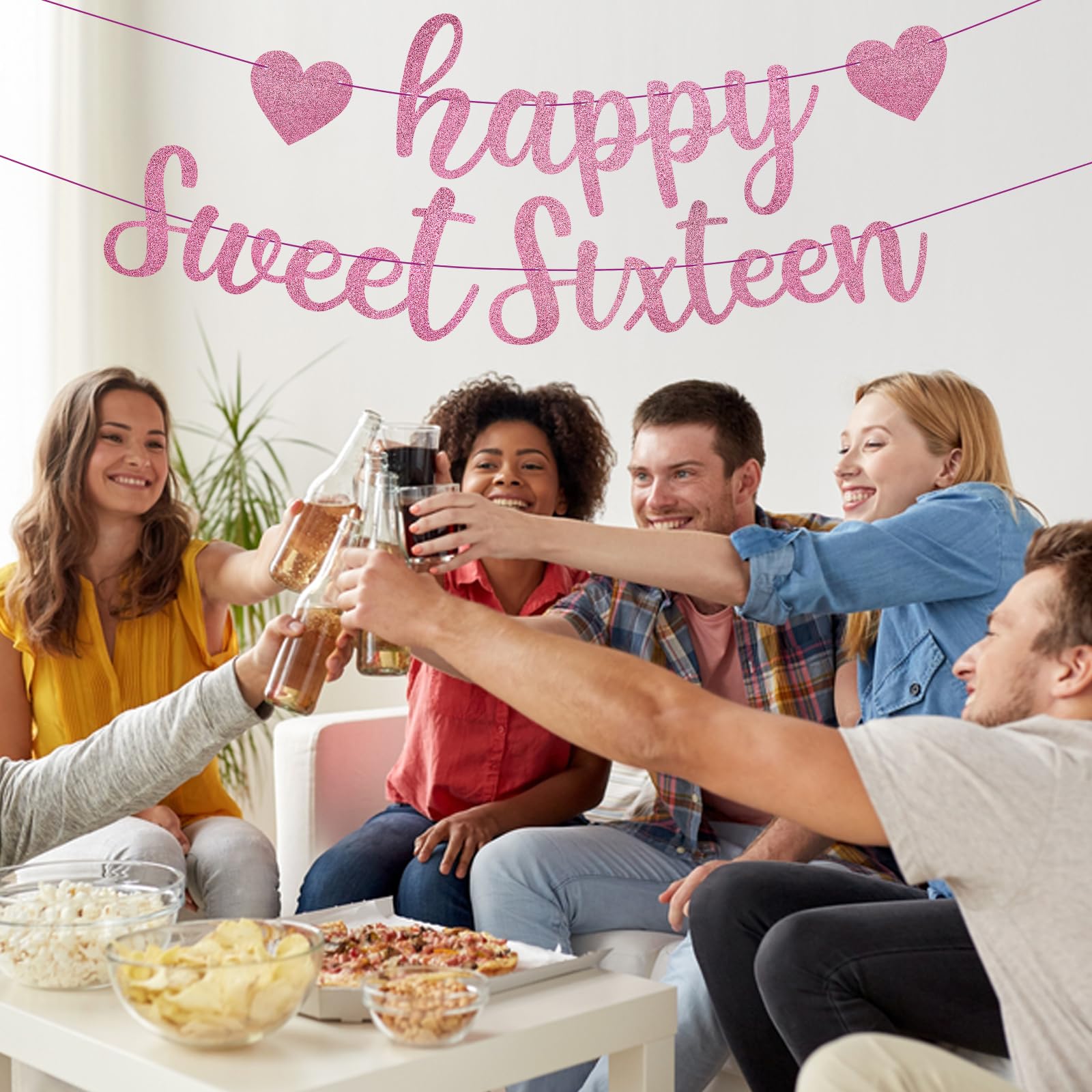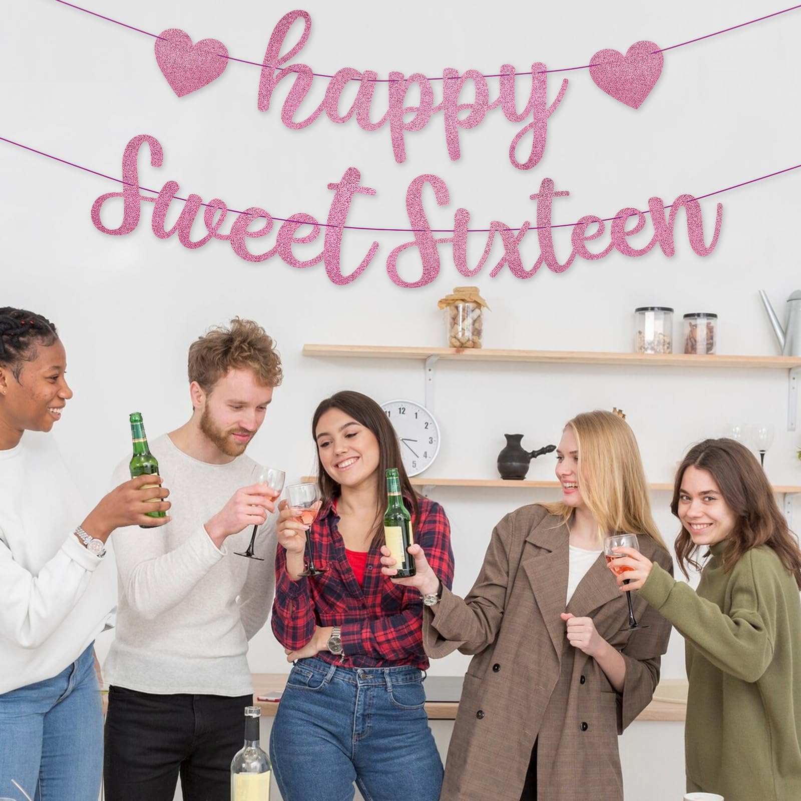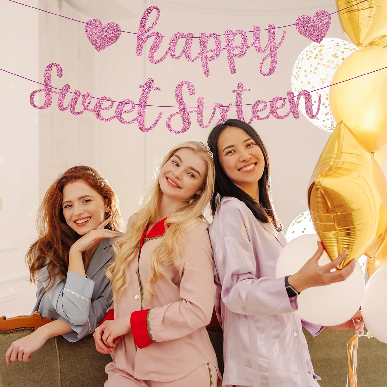 Material: Happy Sweet 16th birthday sign made of cardboard, decorated with clear letter, which is very durable and will not fade, reusable for your next party. no shedding glitter sets us apart from other birthday decorations for girl and will set your birthday celebration apart. This sweet 16 banner for girls work for any event space,They are very durable and can be reused. ou can easily add them to mantels, banisters, windows, dessert tables even use as a photo backdrop.