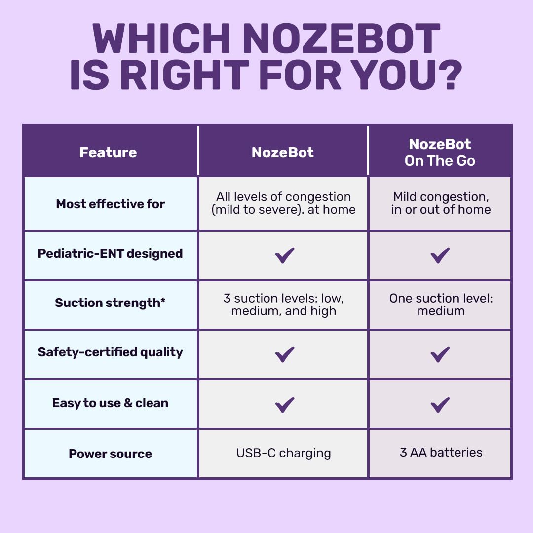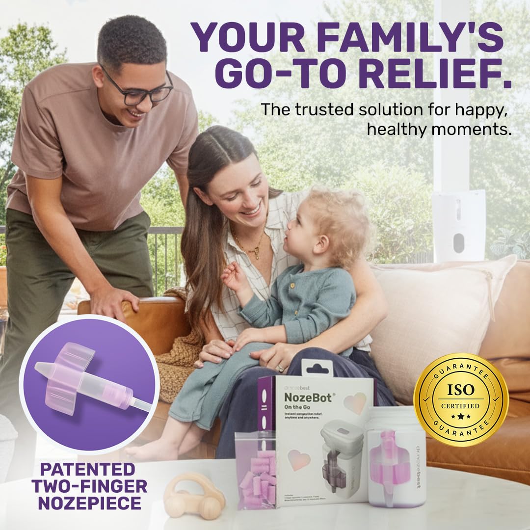 Designed by a Pediatric ENT - Created by a pediatric ENT who’s also a parent. The NozeBot On the Go uses hospital-quality materials and a patented two-finger nosepiece to make clearing your baby’s nose safe, quick, and easy.