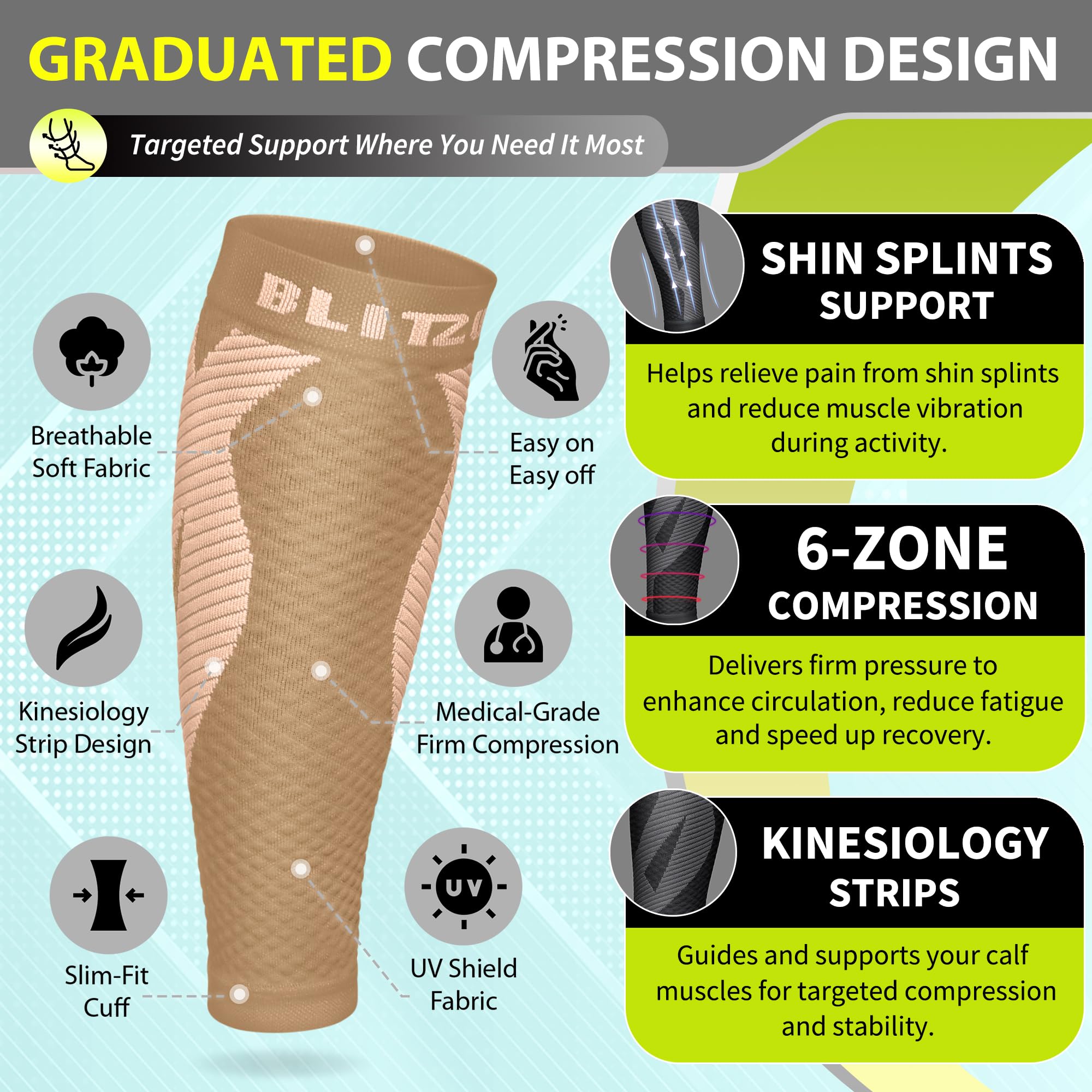Effective Compression for Swelling & Varicose Veins Relief: The BLITZU Calf Compression Sleeves feature graduated compression to improve blood circulation, reduce swelling, and alleviate discomfort caused by varicose veins and pregnancy-related leg swelling, making them perfect for nursing mothers and individuals with circulation issues.