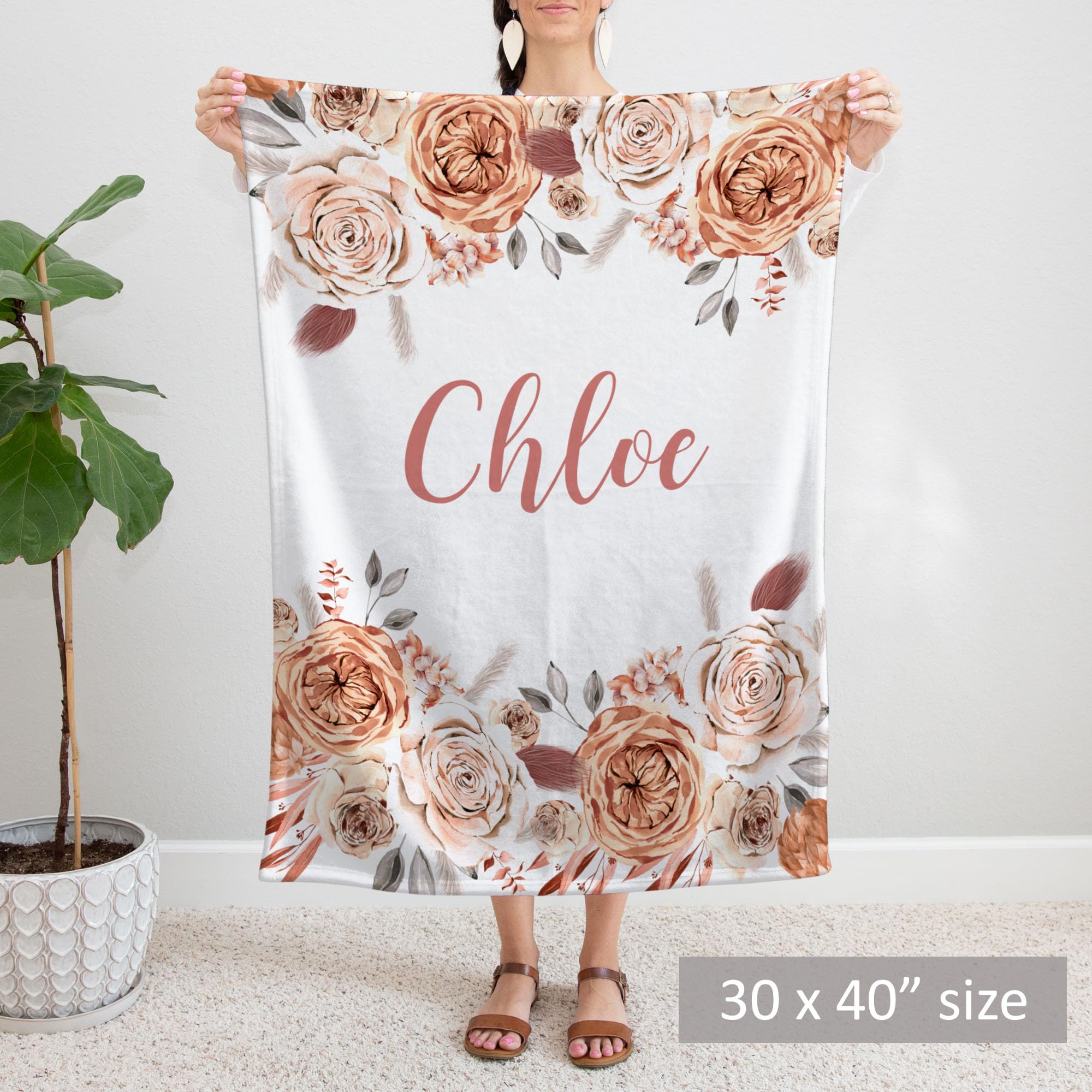 Sizes for baby, toddler and kids: Our personalized blankets are available in a 30 x 40 inch size which is perfect for newborns and babies, and a larger 50 x 60 inch size which is suitable all the way from baby, through the toddler years and well into childhood