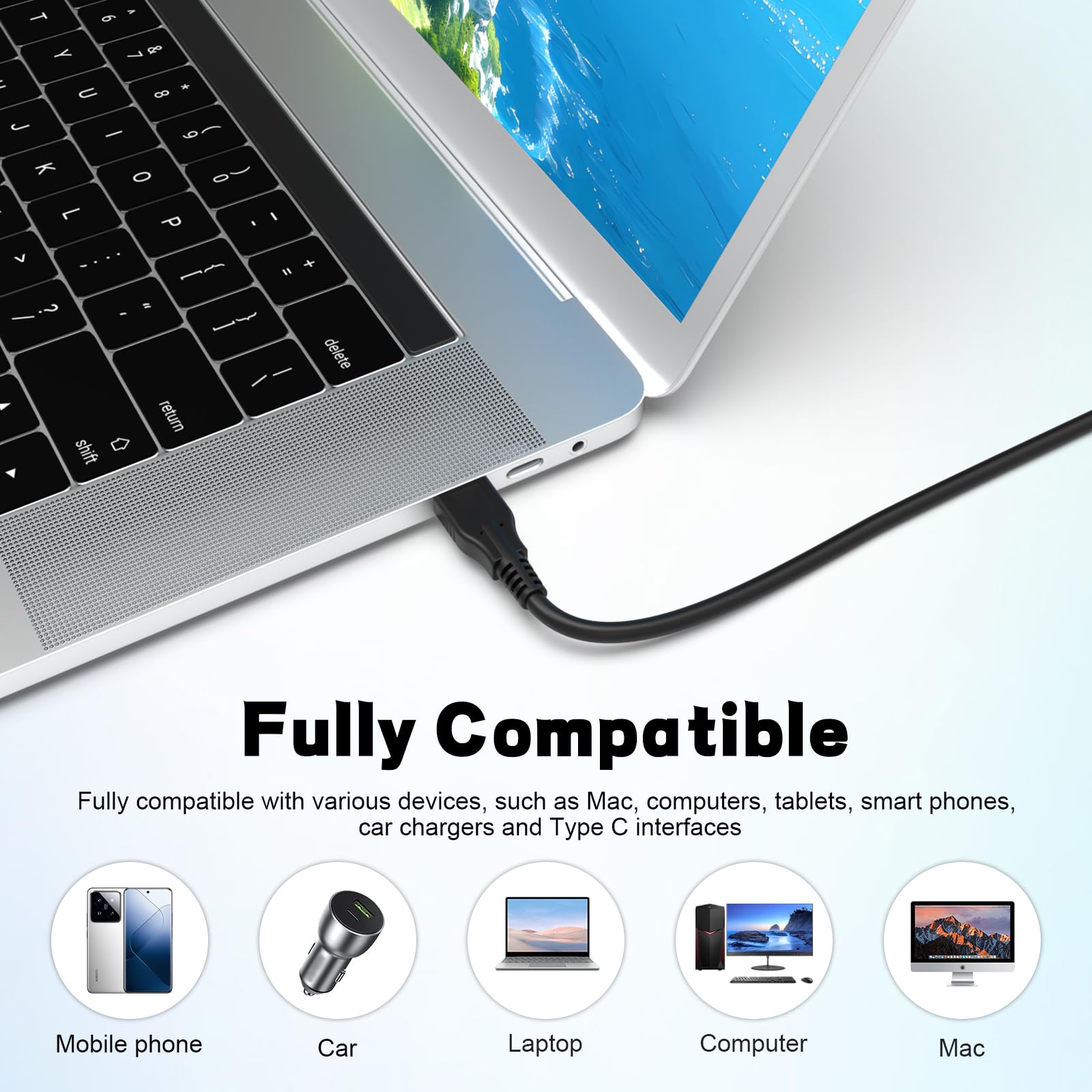 Simply connect via USB-C—no drivers or software required. Works with computers, wall adapters, and power banks for instant charging and data transfer.