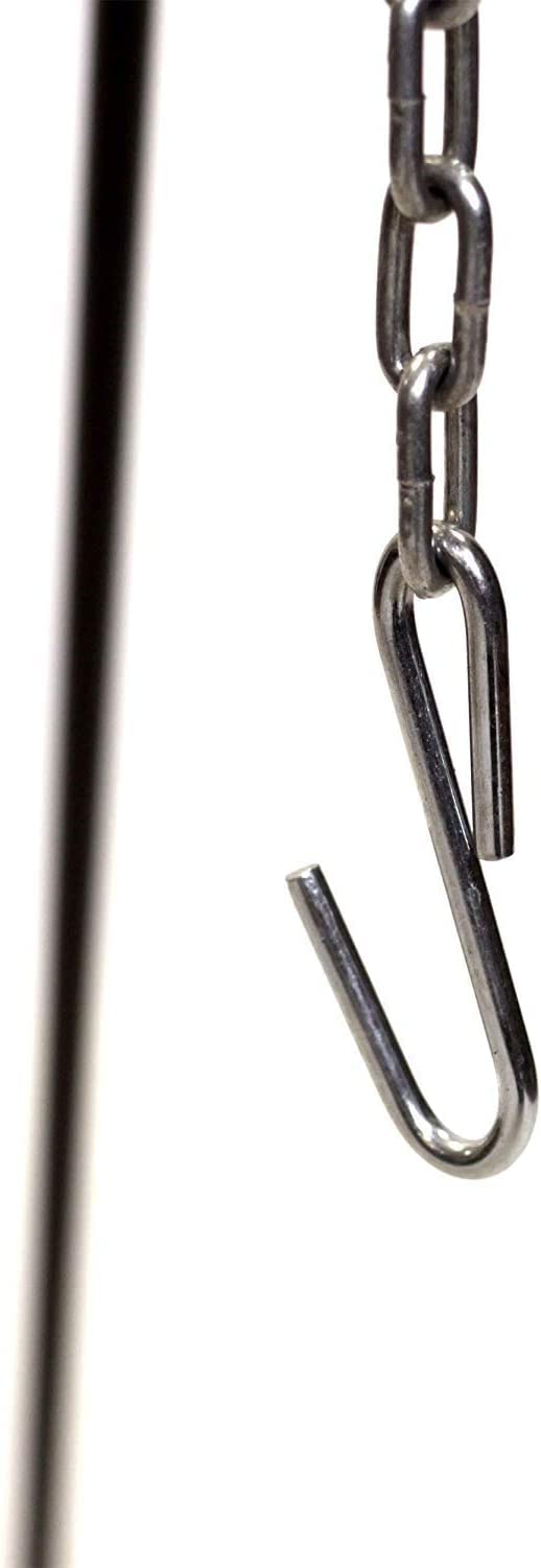 ADJUSTABLE STAINLESS STEEL CHAIN: The included long and sturdy stainless steel chain is adjustable, allowing you to easily control the height of your hanging cookware or other items. The high-quality chain is built to last and can withstand the demands of outdoor use.