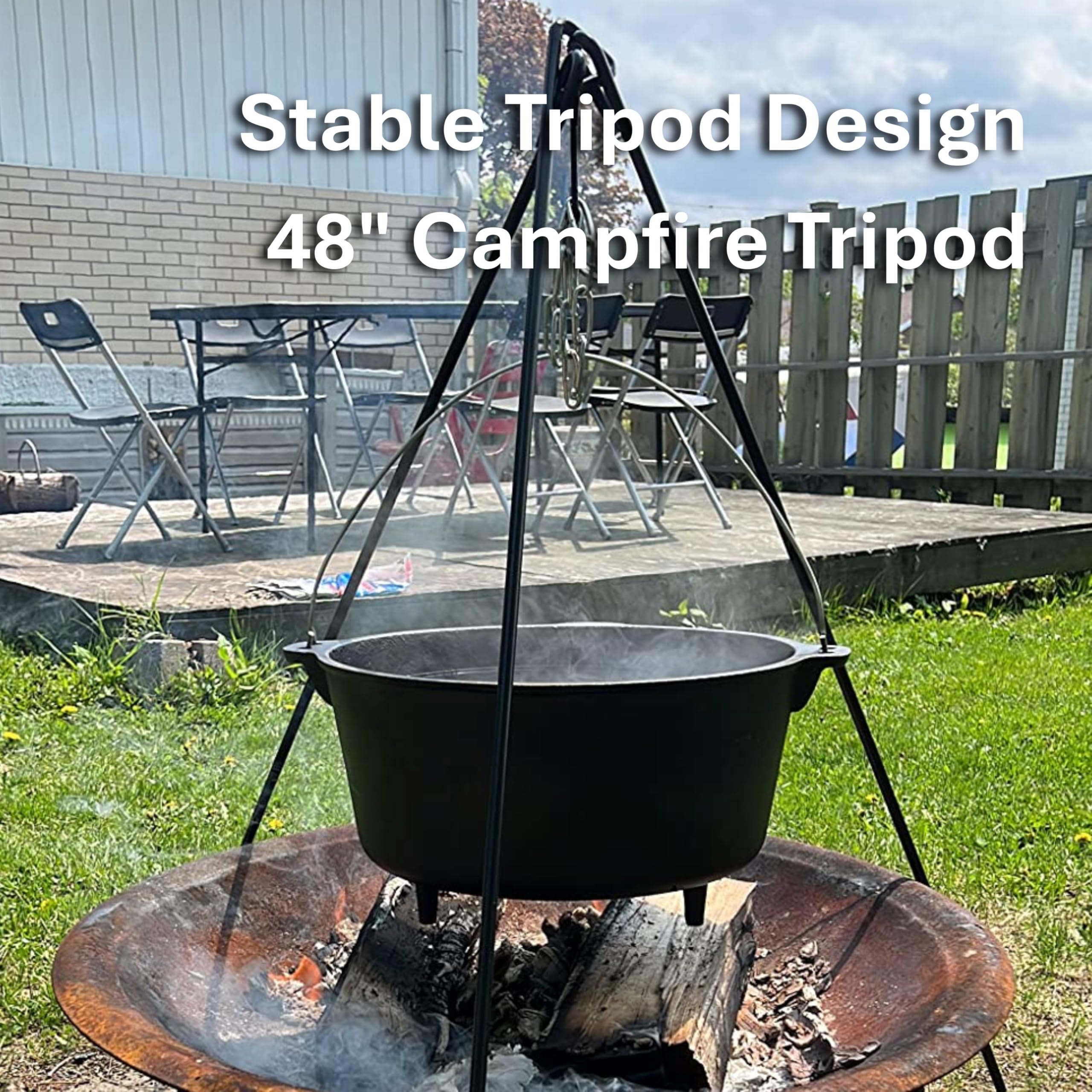STURDY TRIPOD STRUCTURE: This campfire tripod is constructed from durable 48-inch steel, ensuring stability during use. Its sturdy design guarantees maximum stability, allowing you to enjoy outdoor activities such as camping, picnics, and barbecues with confidence.