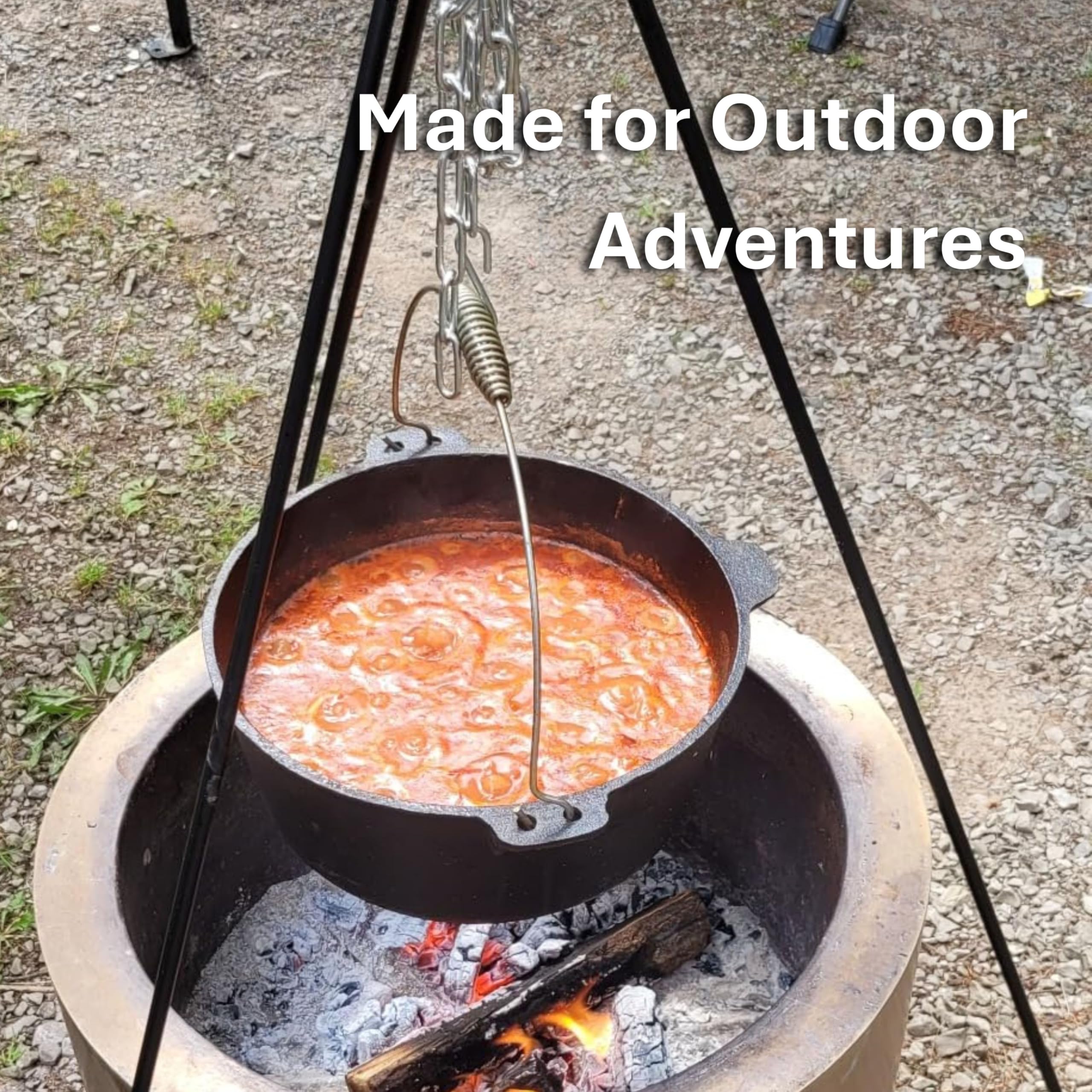 VERSATILE USE: The tripod's versatility makes it perfect for hanging a variety of items such as Dutch ovens, teapots, coffee pots, lanterns, kettles, and even for drying clothes. It's an essential tool for outdoor cooking and activities.