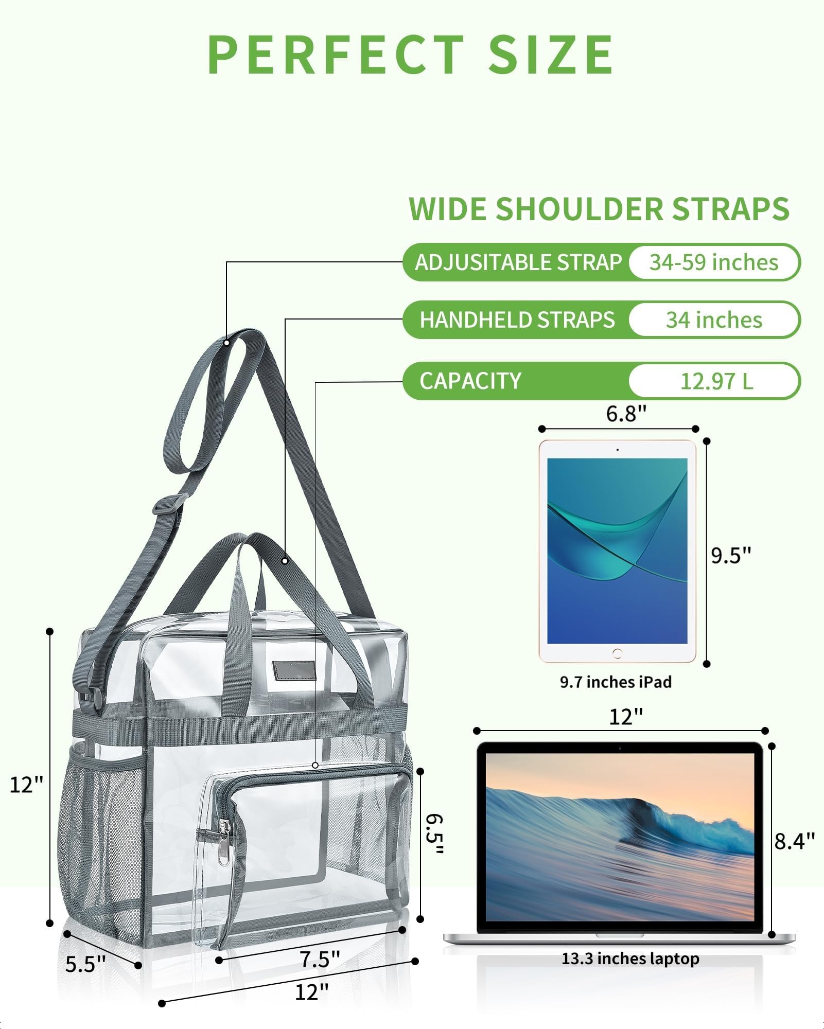 【Stadium Approved】With a size of 12"x 12"x 6", the clear tote bag is perfect for occasions where clear bags are required such as festivals, sports games, concerts etc. Quickly pass the security check.