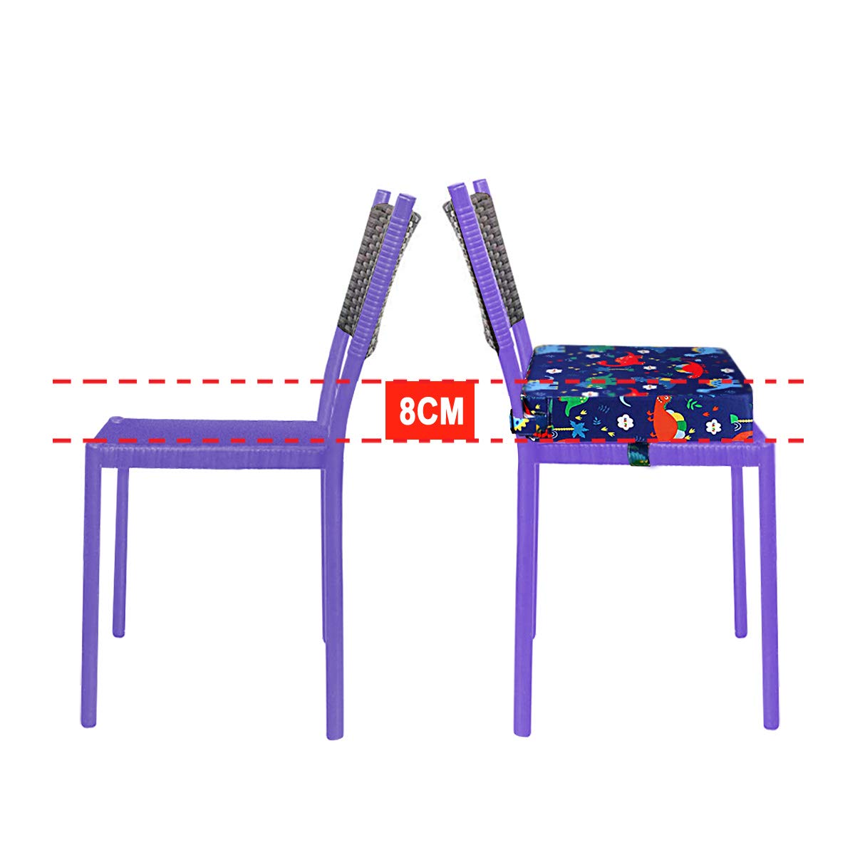 Dimensions: 12.6"L x 3.1"H x 12.6"W, fit most of dining chairs. It can be used for toddler children old who can sit at table to enjoy the meal with family together. Also can used for children writing, drawing and play toys.