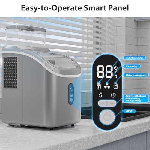 ใSet It & Forget It with 24H Timerใ Plan Your Ice Production Ahead! The built-in 24-hour timer allows you to set the machine to start or stop making ice at your desired time. Save energy by programming it to run only when you need it, ensuring a fresh supply of ice is ready when you get home from work or for your next gathering.