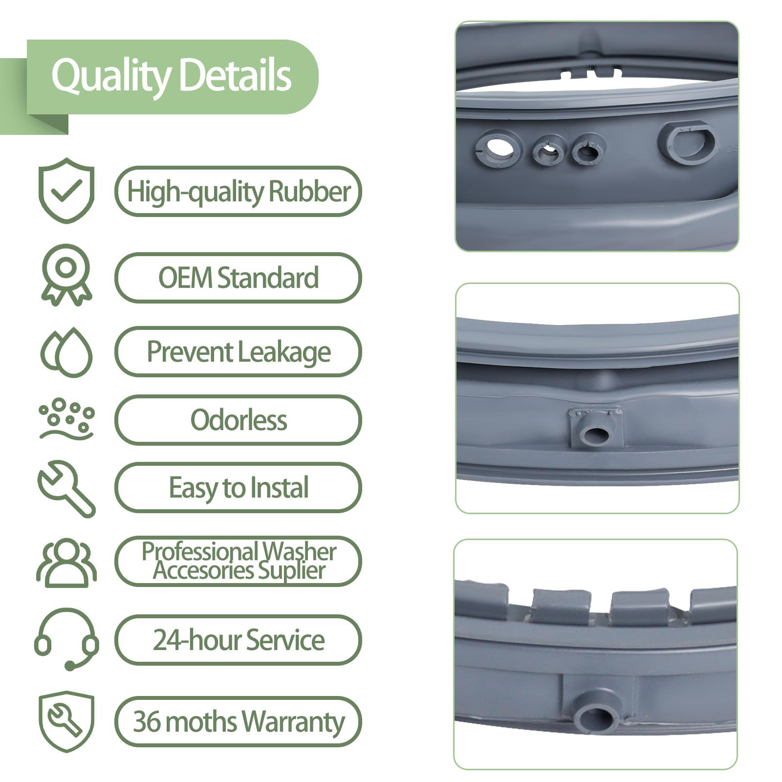 ๐ใ๐๐ข๐ ๐ก ๐๐ฎ๐๐ฅ๐ข๐ญ๐ฒใWhen your Washer Door Boot Seal Gasket leaks from the door seam or makes noise from the door seam, Odors cannot be eliminated, Please replace it in time, Our Door boot MDS47123605 forms a seal between the wash tub and the door, preventing leaks. The upgraded MDS47123605 Door Boot Seal is made of corrosion resistant silica gel to ensures high durability and long service life.