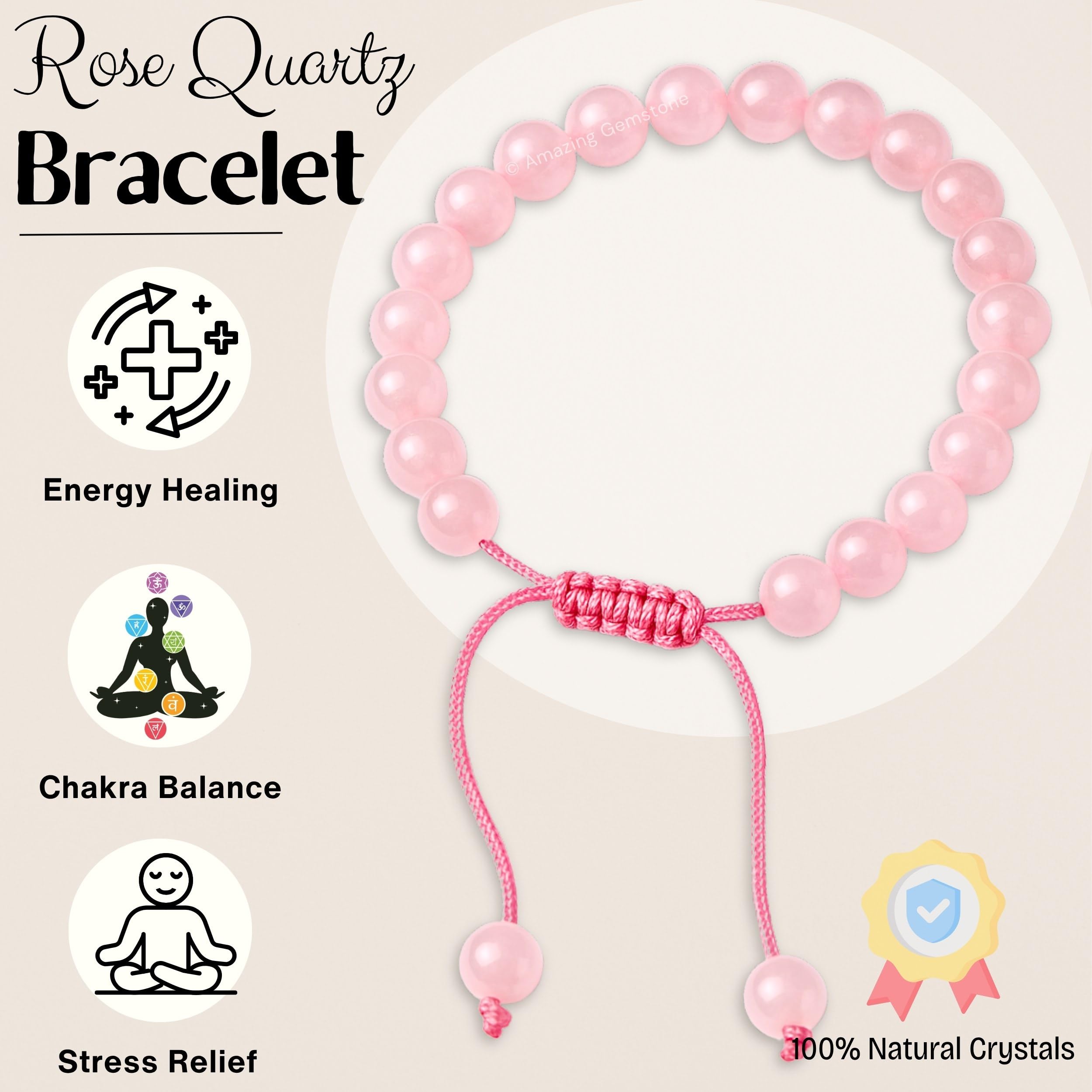Natural : These Rose Quartz Bracelets are handmade with high quality authentic natural gem stone beads.