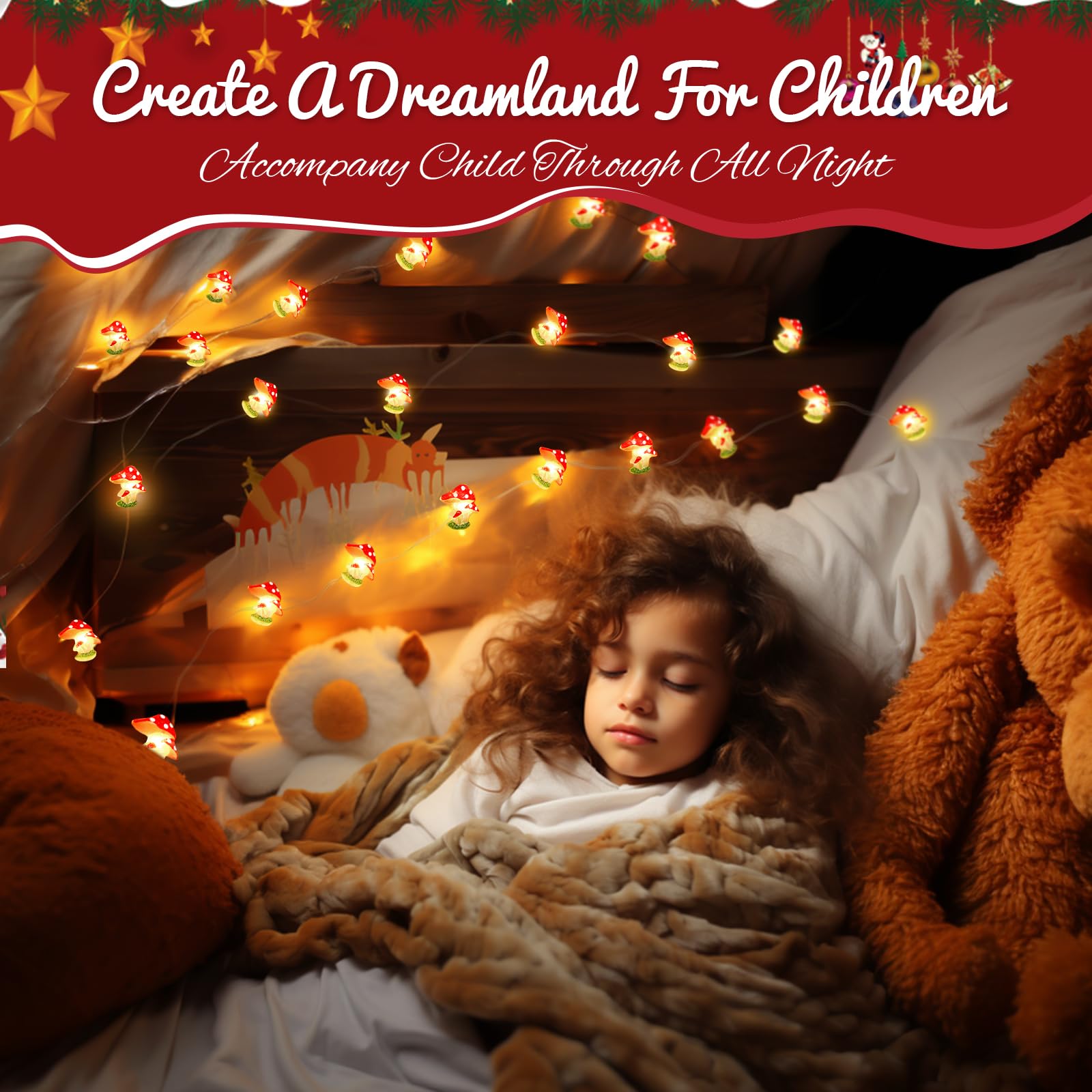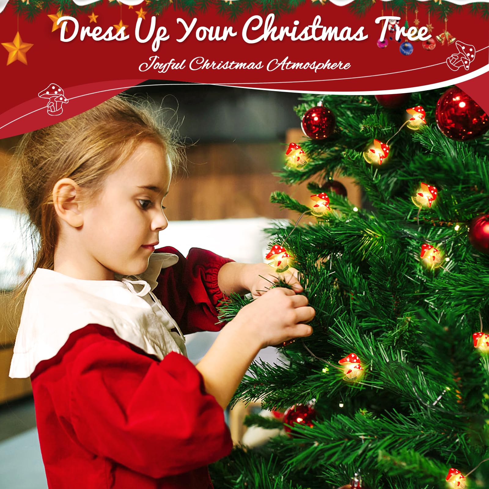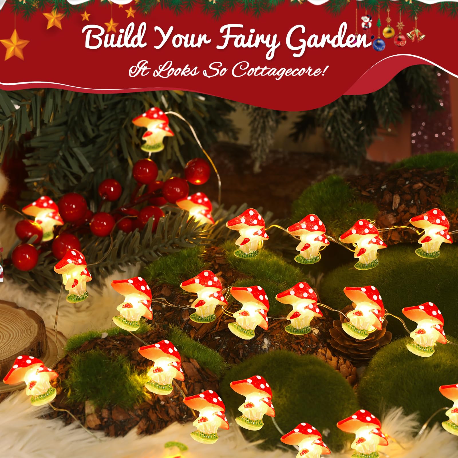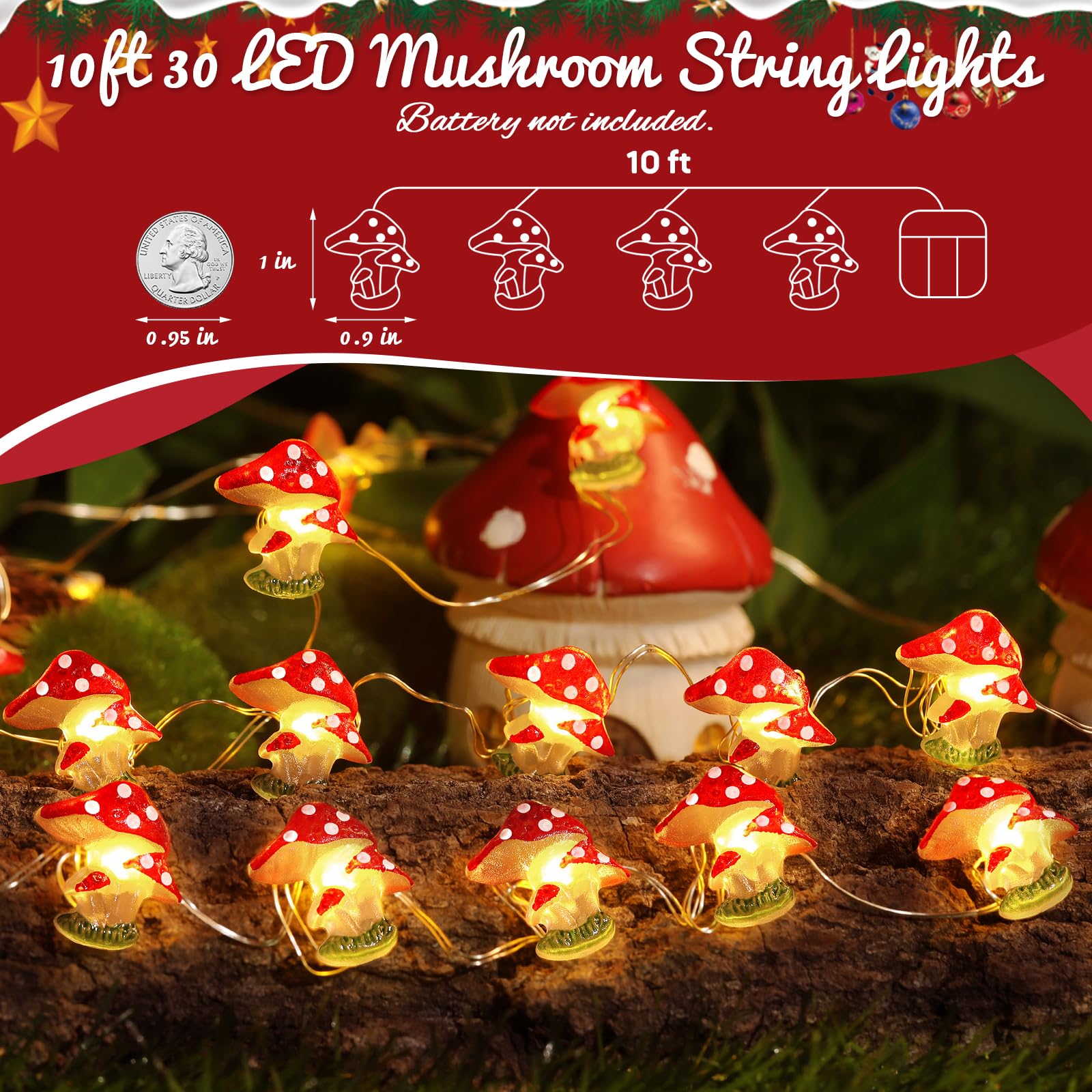 Sturdy Mushroom Decorative Fairy Lights - The mushroom decor is equipped with 30 LEDs and measures approximately 10 feet/3 meters in length, with each mushroom measuring 0.9 x1 inches. Made of sturdy silver-plated copper wire, which is tough and flexible. The mushroom LED lights are completely safe to touch and produce little to no heat and will not overheat even after prolonged use