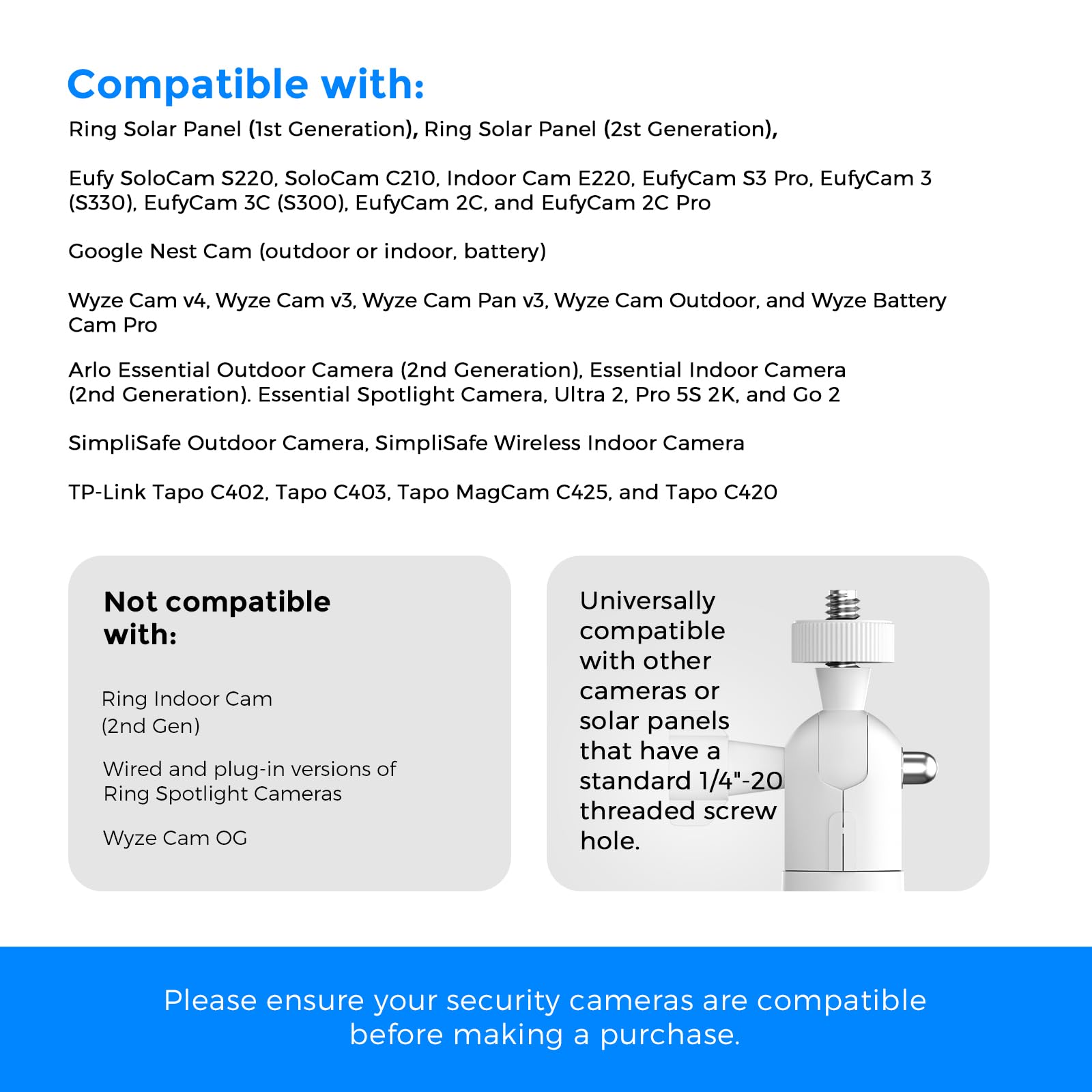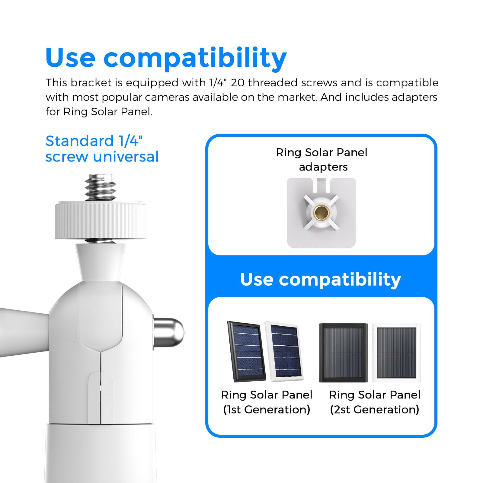 【Universal Compatibility with Ring Solar Panels】 Designed specifically for Ring ecosystem. Perfectly fits Ring Solar Panel (1st and 2nd Generation) to keep your camera perpetually charged.