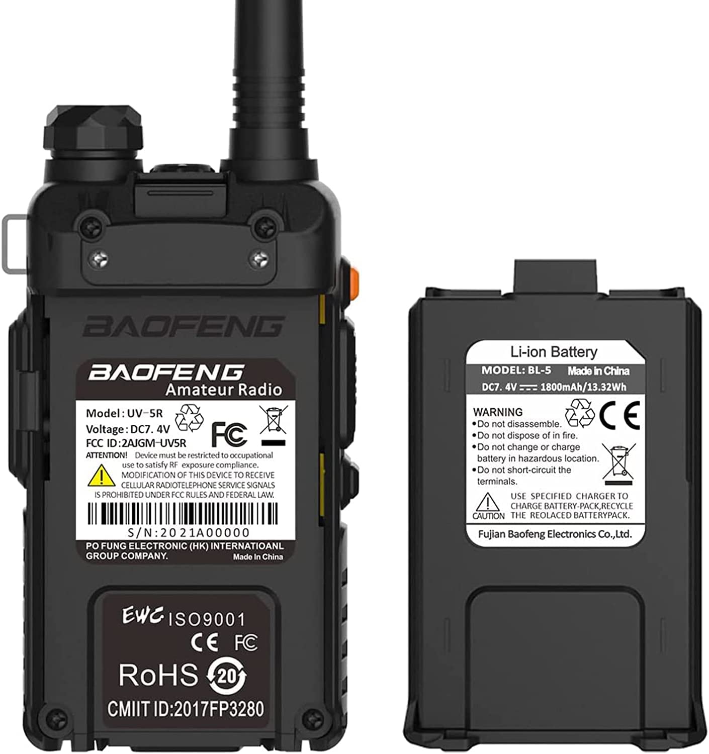 Baofeng Radio Classic Model UV-5R. Up to 128 memory channels; Dual-Band Display & Dual-Standby; Private Code.