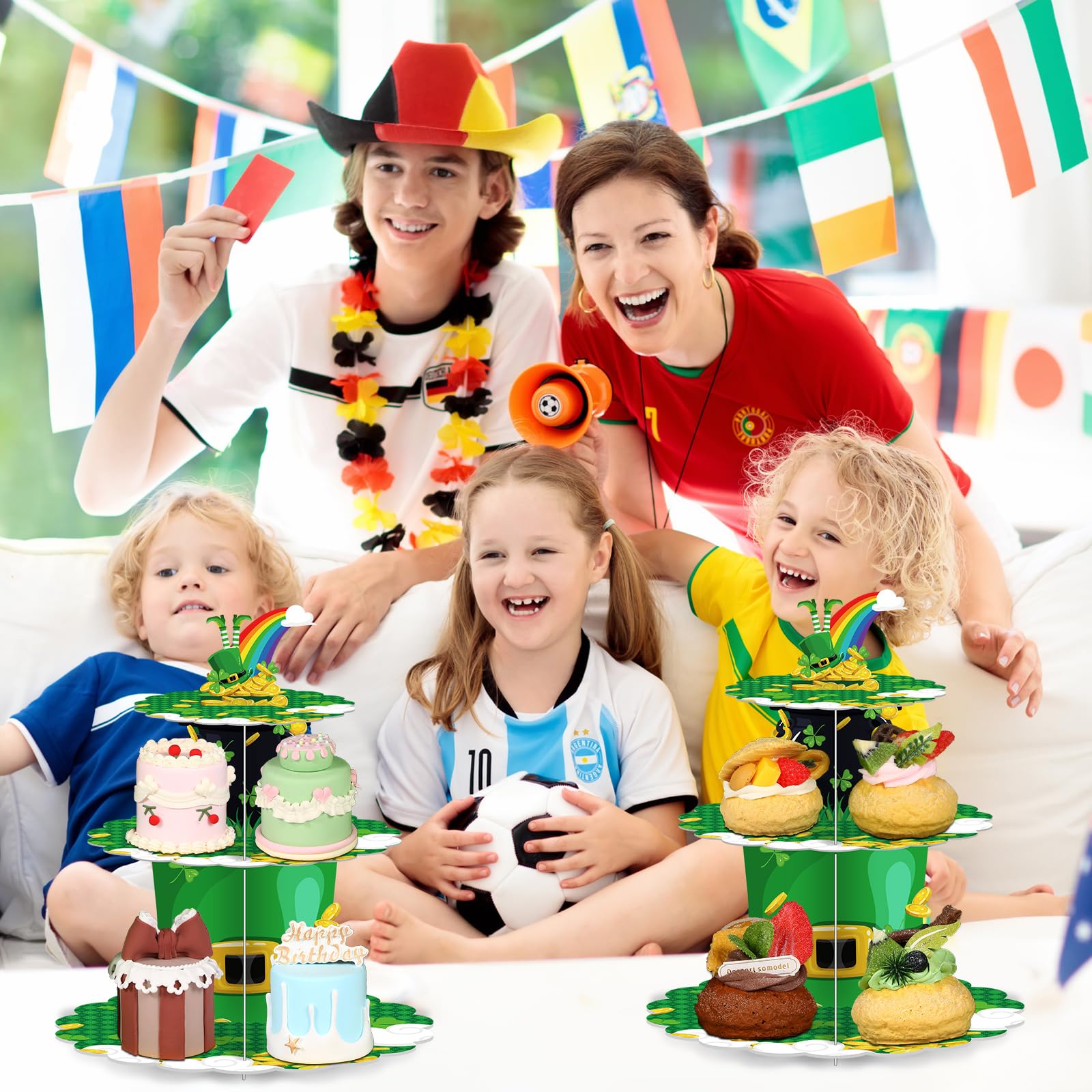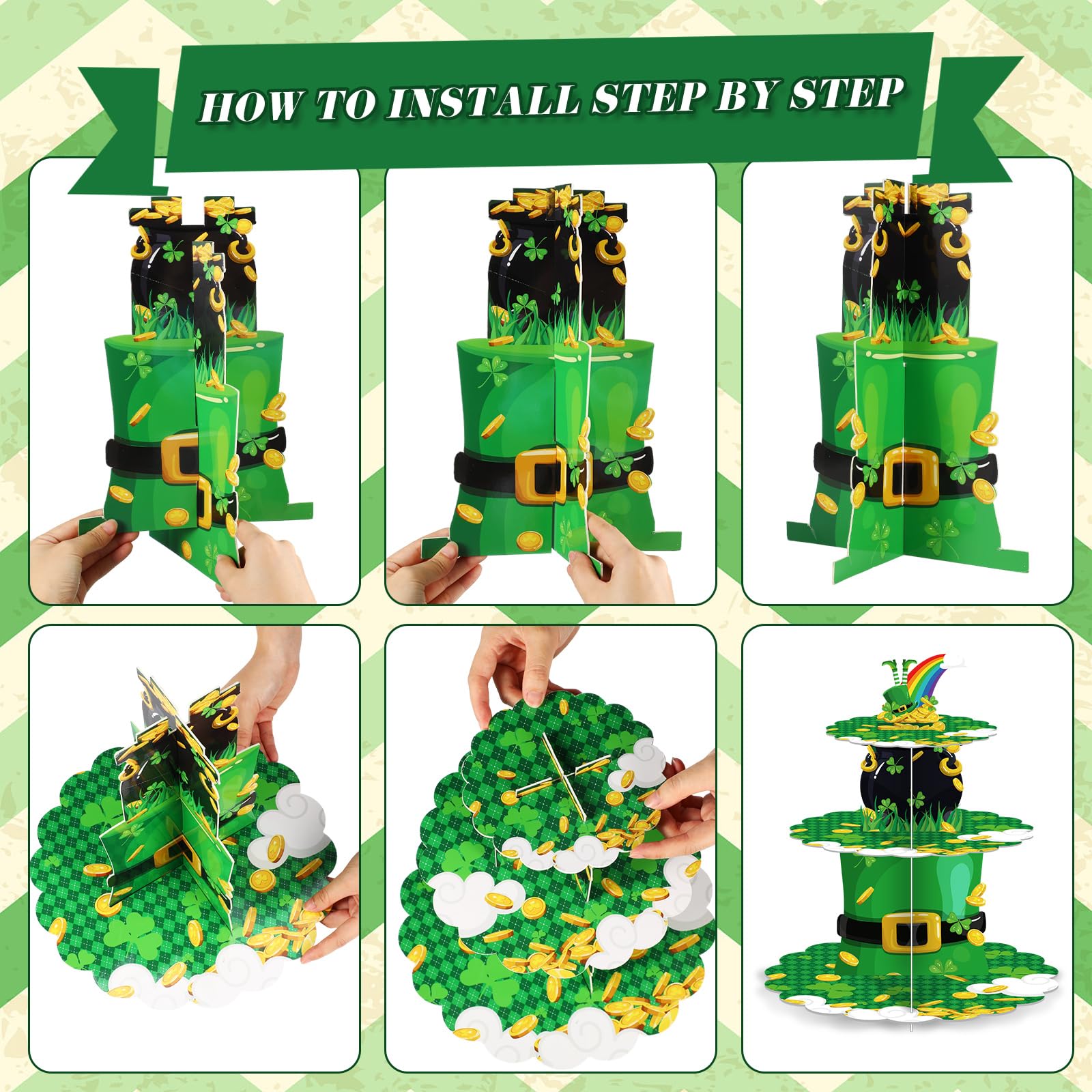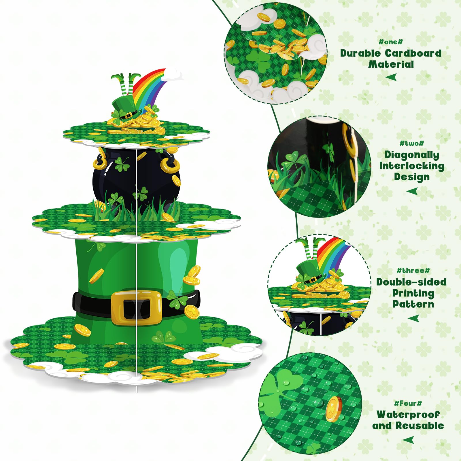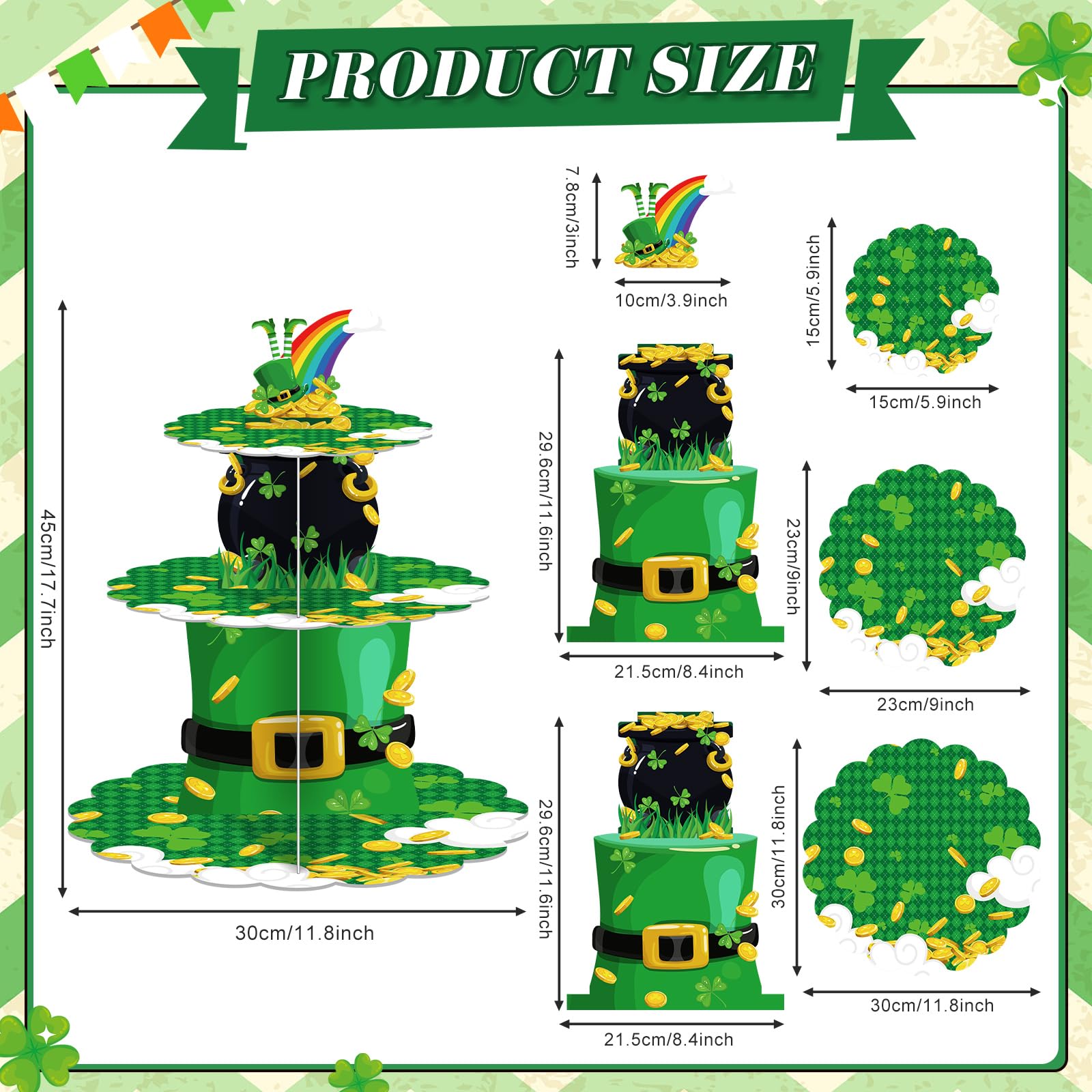 Quality Material: shamrock birthday cupcake tower party decorations are made of quality sturdy cardboard, sturdy and durable for holding many party desserts, using a double sided printing process, waterproof and reusable, which adds an active atmosphere for your Green Irish Clover theme party, you can also match it with other Green Irish decorations