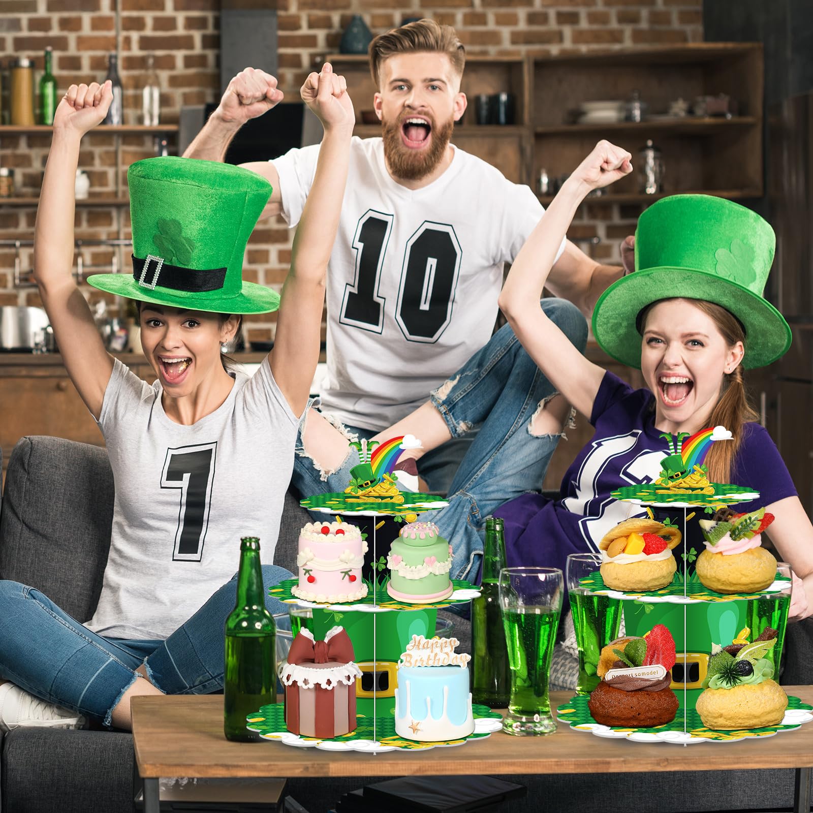 St; Patrick's Day Theme: this St. Patrick's Day cupcake stand party decorations are designed in the shape of lucky hat and Black Cauldron, the whole is mainly green, patterns are professionally printed and bright colored, bring life to the cake stand, making your Green Irish party bright and interesting, which will meet your Green Irish theme decorations needs