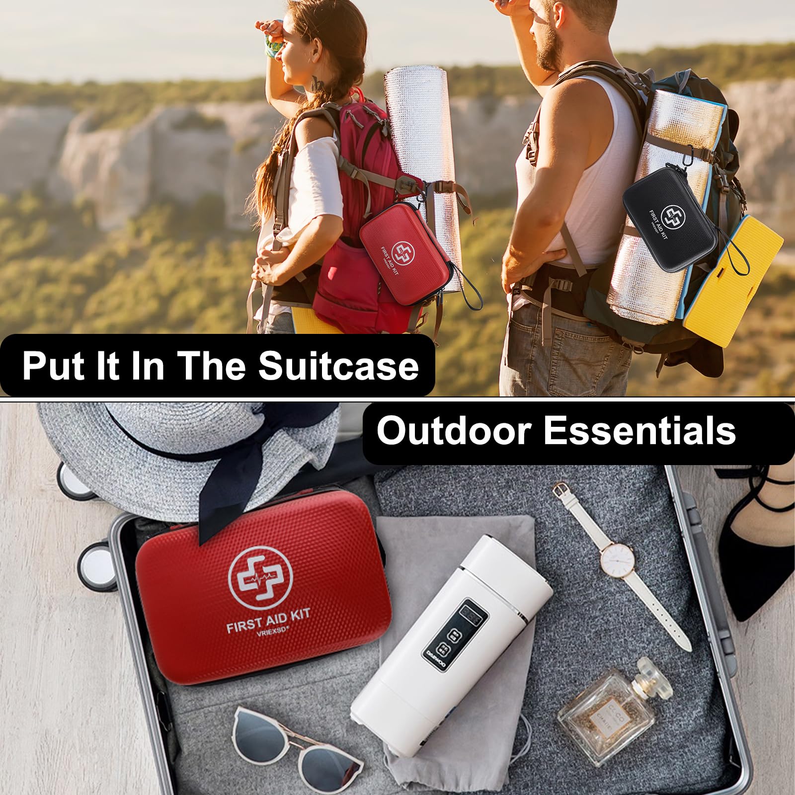 QUALITY AND DURABILITY: The EVA material, which is carefully selected, is of premium quality, water-resistant, lightweight, strong, and durable. The water-resistant outer zipper and EVA surface protect components from the elements (do not soak). Outdoor emergency needs, such as hiking, camping, backpacking, traveling, and wilderness adventure, are well served by the first aid bag itself