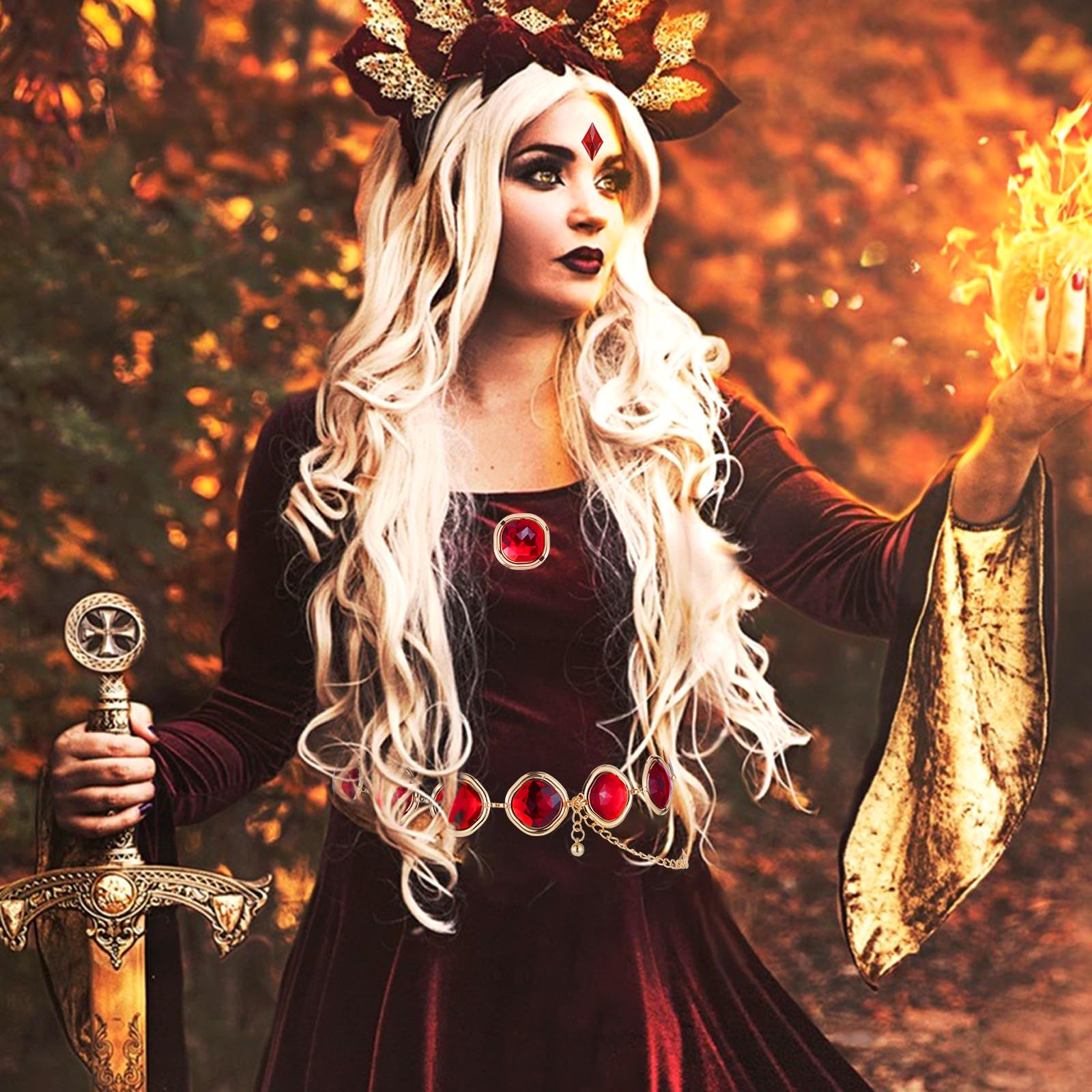 Versatile Raven Set: This red jewel belt and gems are designed to elevate both jewelry crafting and role-playing outfits. Ideal for pairing with dresses at banquets, as well as for cosplay parties, Halloween, Christmas, and themed events. A charming gift for family, friends, adding joy to festivities.