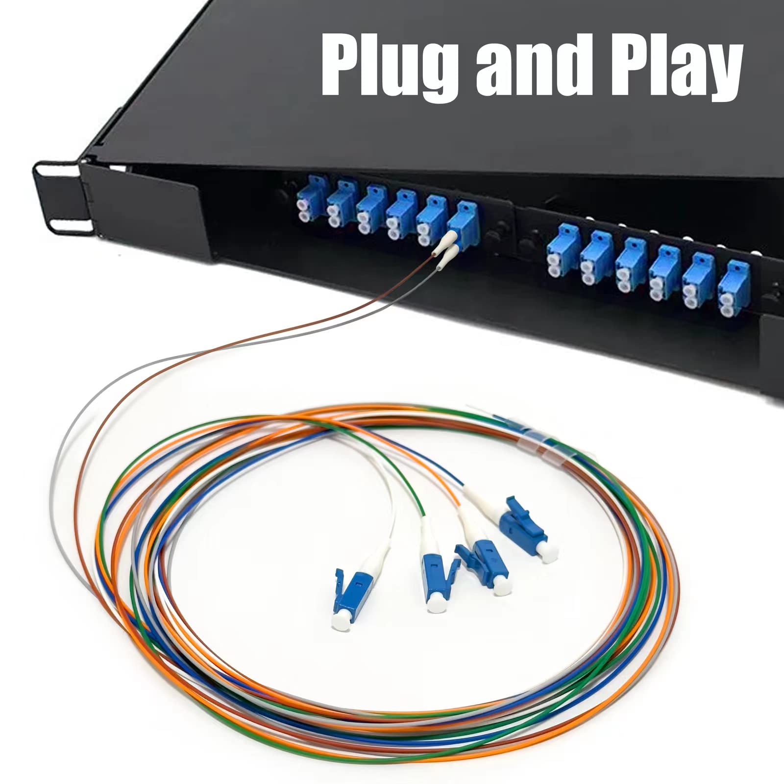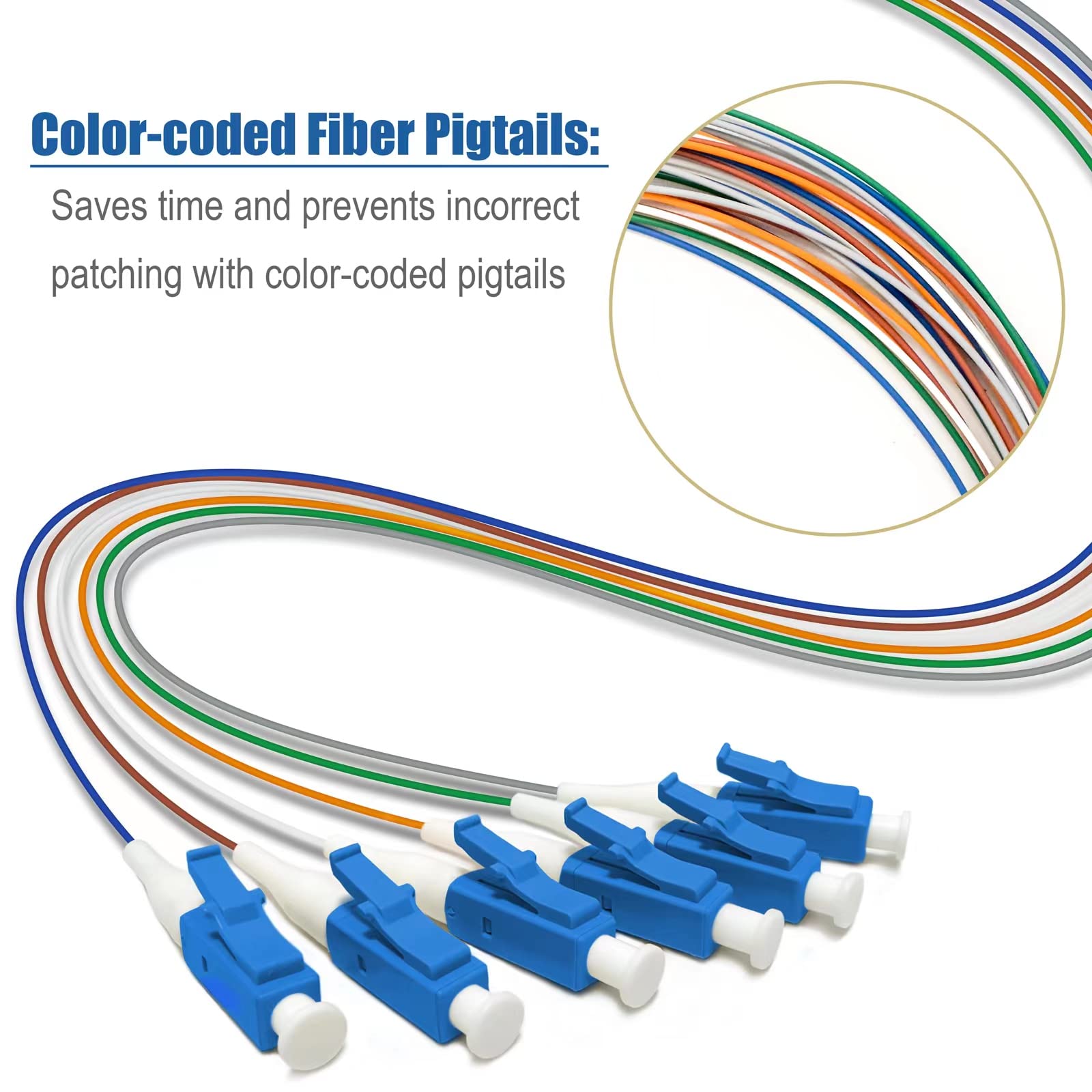 Color-coded Fiber Pigtails: Individually colored to easily match color-coded Fiber Cable that will be spliced. Saves time and prevents incorrect patching with color-coded pigtails