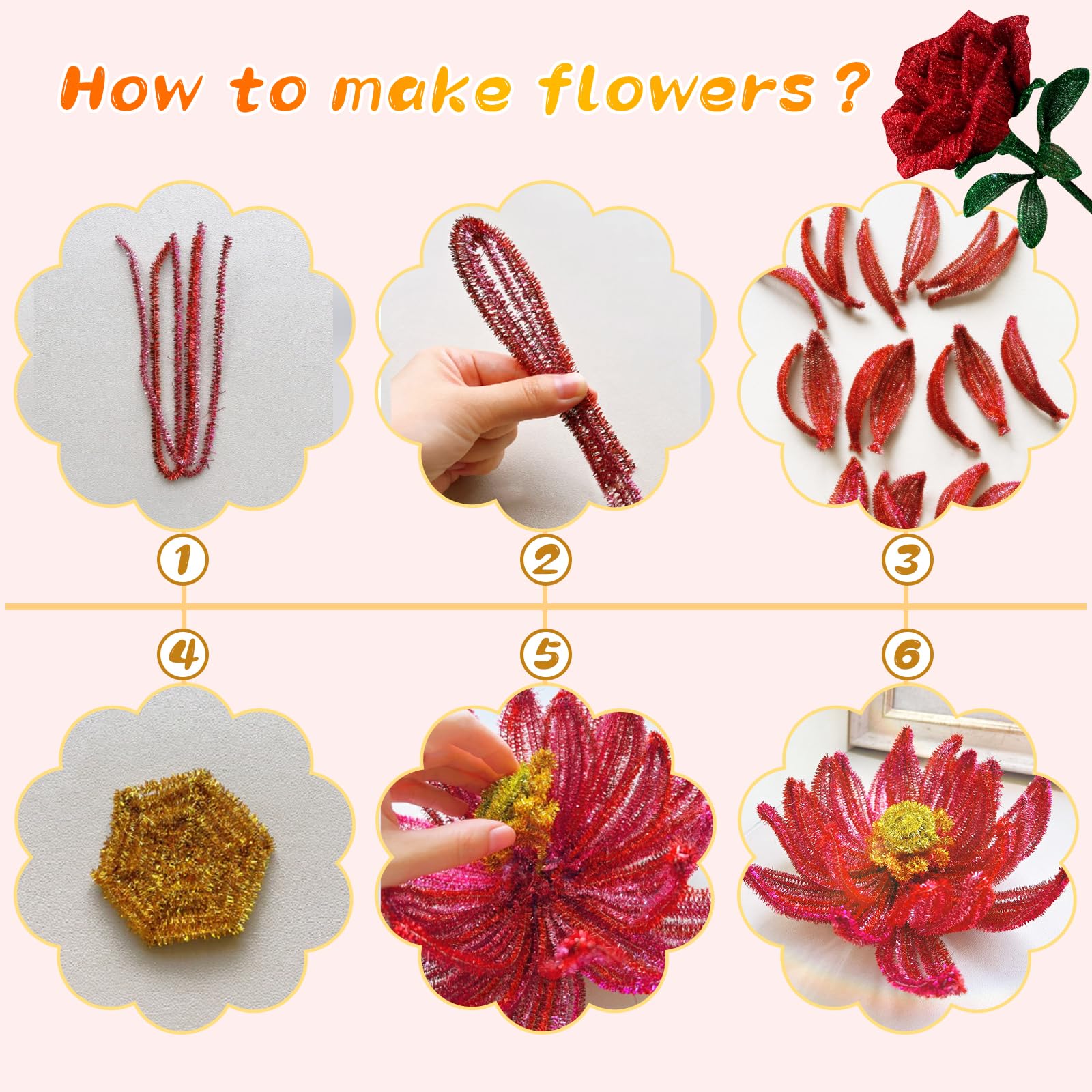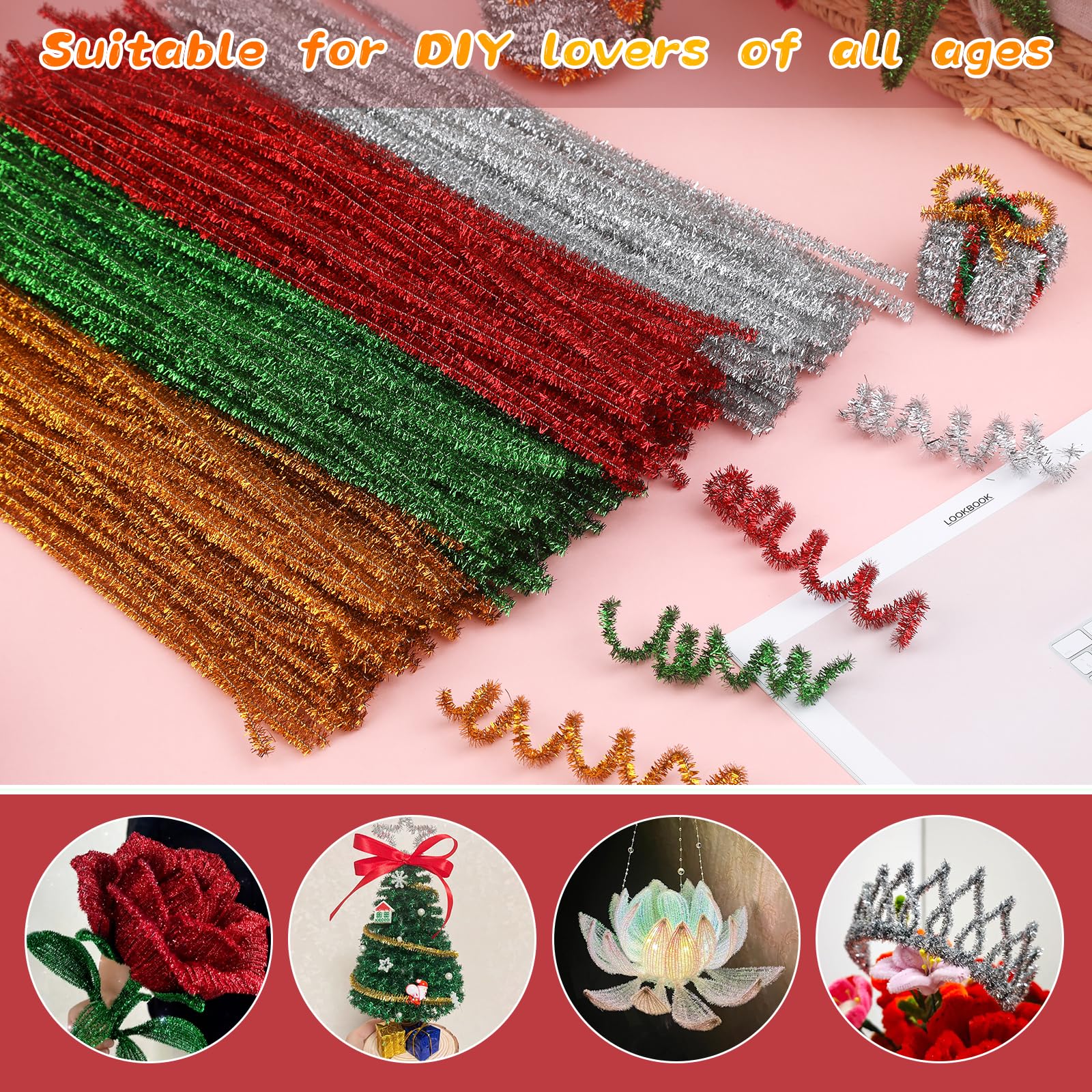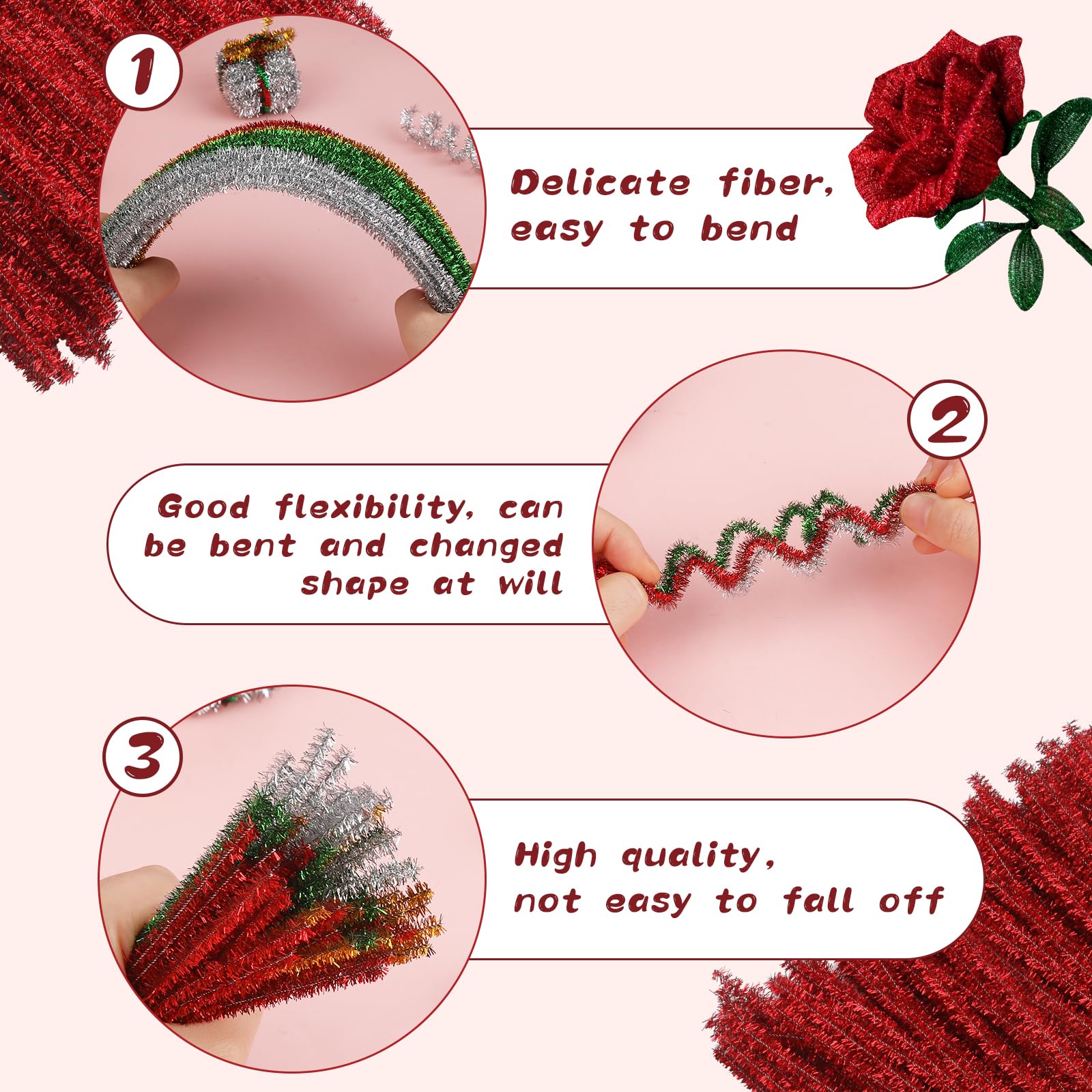 High-quality Material: These pipe cleaners are made of metal wire and glitte, shiny, durable and not easy to break, can be flexibly bent into creative shapes and figures, and the finished product is not easy to fall apart