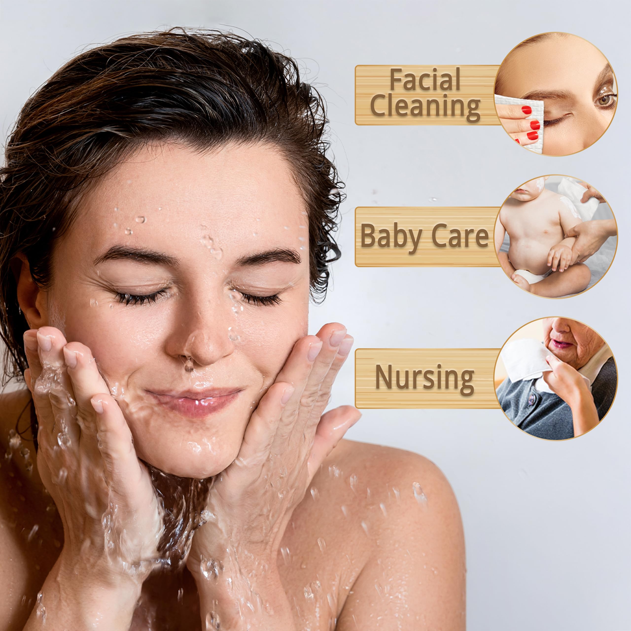 MULTI-FUNCTIONAL : WOWOTEX face towels are ideal for face & body wash, baby care, removing make-up, clean your makeup tools, household cleaning, pet care, outdoor use and traveling.