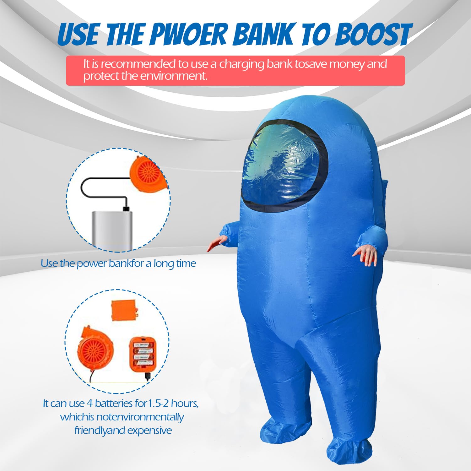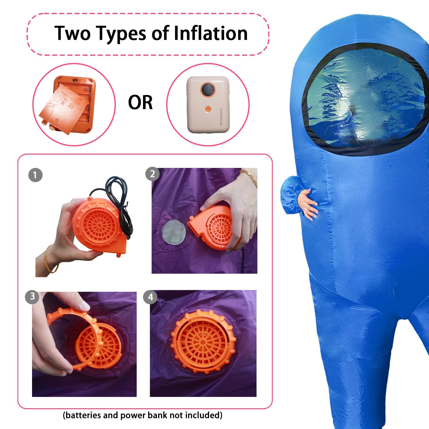 Importance: This inflatable space costume is larger than typical options, so we recommend using a USB charger for inflation. This method will ensure quick and complete inflation.