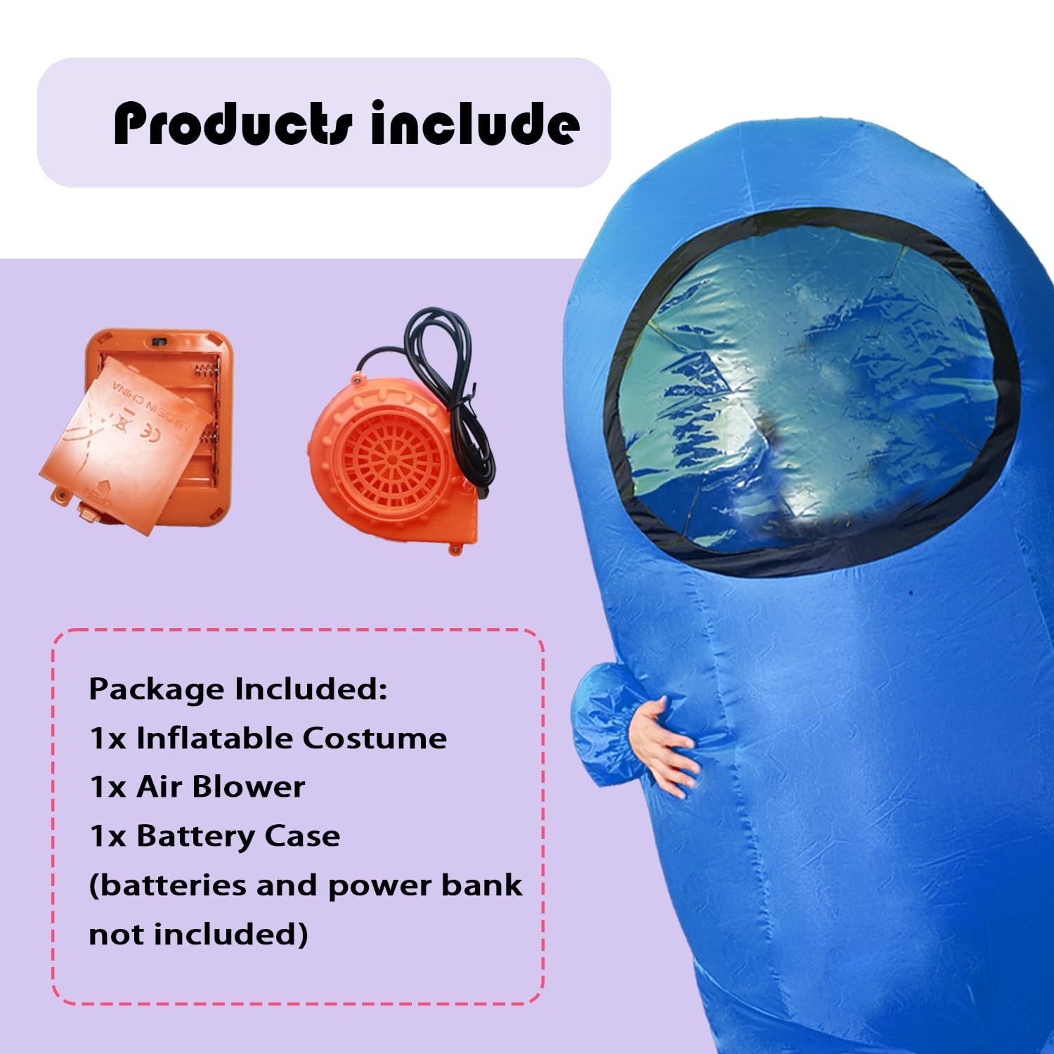 Description Importance: This inflatable space costume is larger than typical options, so we recommend using a USB charger for inflation. This method will ensure quick and complete inflation. The imposter inflatable costume accommodates individuals between 160-195 cm in height. It is crafted from durable polyester, featuring windows made of double-layer material, allowing you the freedom to enjoy trick-or-treating. The Space Crewmate game emphasizes patience and provides an engaging way to pass the time with friends. Arrive at any gathering in style with our new crewmate costumes. Whether you're spending quality time with family or attending a Halloween party with friends, there's no reason not to fully embrace the spirit of the occasion with this spaceman costume. This spaceman outfit represents one of the most popular games today, offering an easy way to connect and play together. You can wear this costume while trick-or-treating alongside your friends without needing a mask. Adult Crewmate Costume
