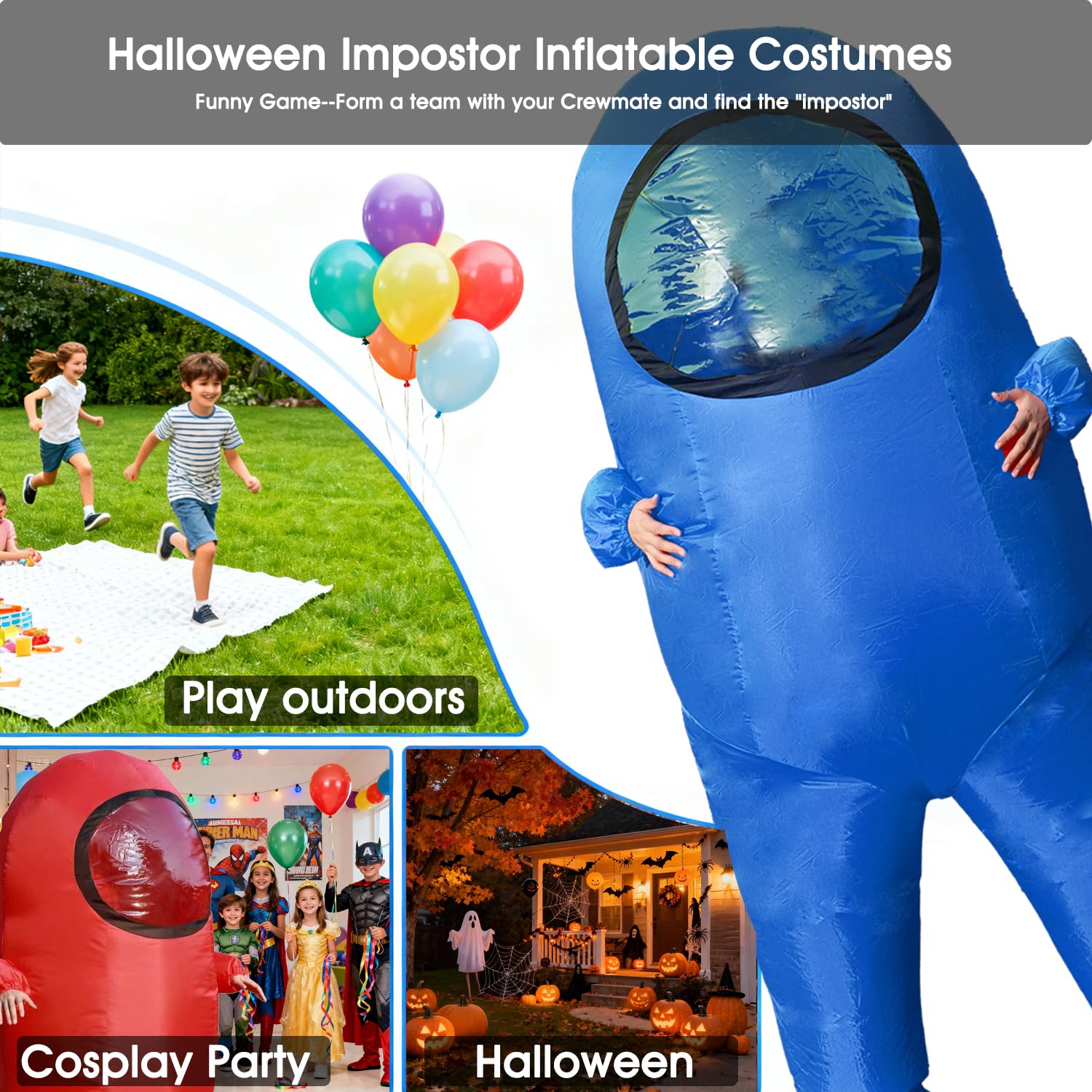 The imposter inflatable costume accommodates individuals between 160-195 cm in height. It is crafted from durable polyester, featuring windows made of double-layer material, allowing you the freedom to enjoy trick-or-treating.