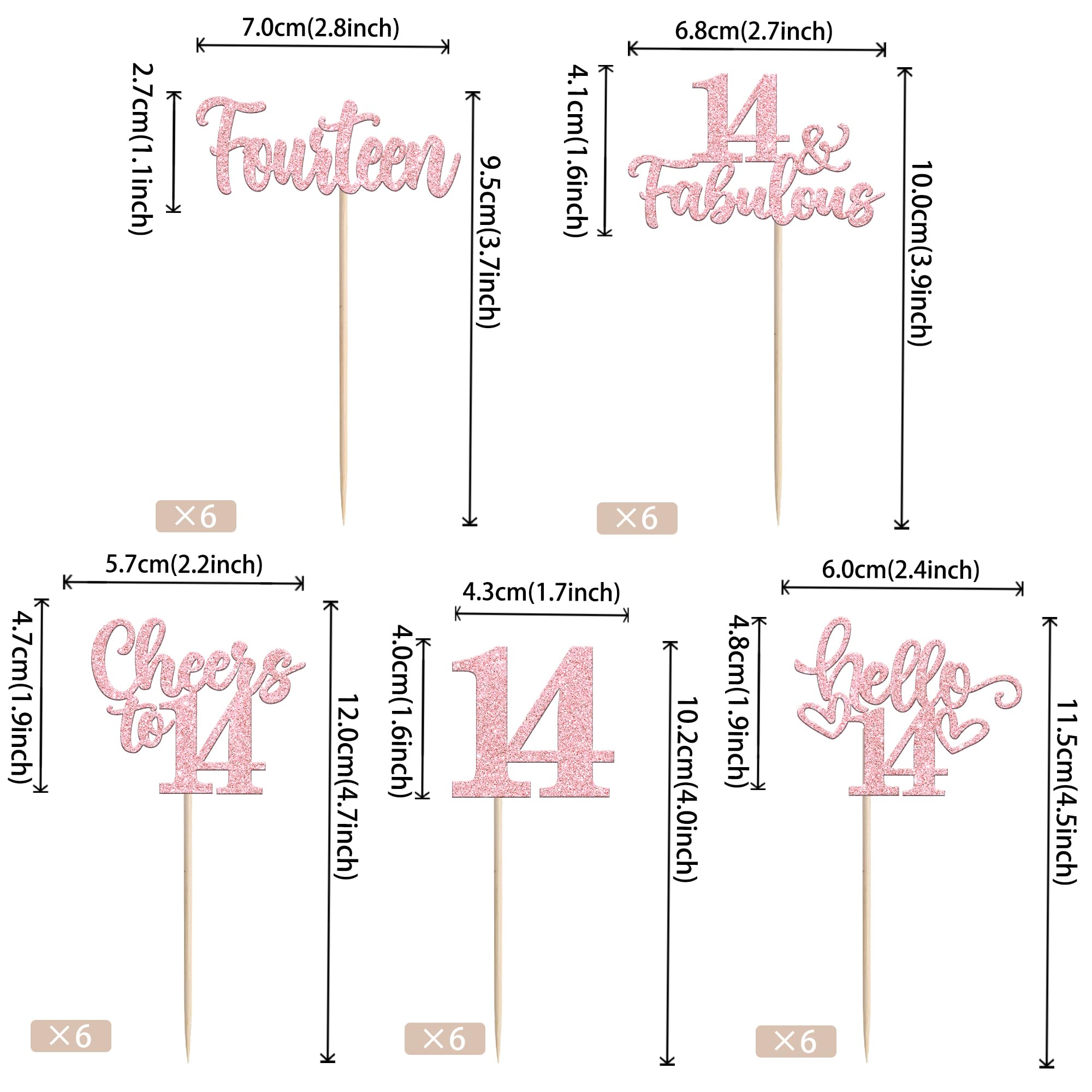 Happy 14th birthday Cupcake Toppers Hello 14 Cheers to 14 Fabulous cupcake Picks for 14th Birthday Anniversary Party Cake Decorations Supplies Perfect for happy 14th birthday theme party, cheers to 14 years party,14th wedding anniversary theme party, cheers to 14 years theme party cake decorations supplies. Pack of 30 pcs, 6 pcs of each design. The size is 2.8*3.7/ 2.7*3.9/ 2.2*4.7/ 1.7*4/ 2.4*4.5 inch ( with stick ) Made of high quality paper card stock,thick and sturdy. These cupcake toppers are intended for decoration only, please do not put them in oven or microwave. If the item you received has any defects, please contact us immediately.we will deal with it within 24 hours.