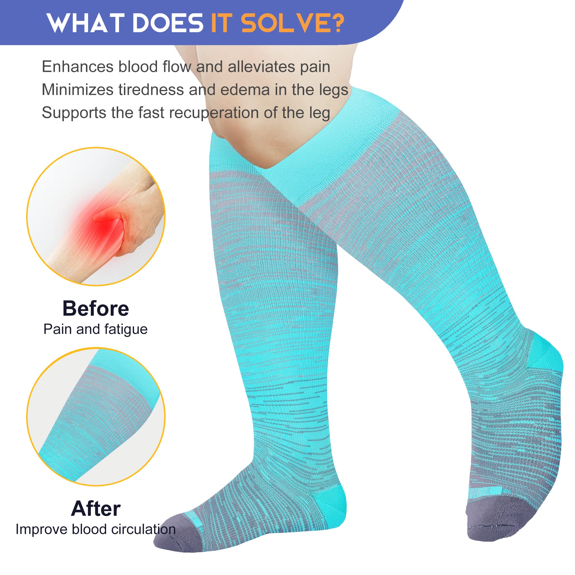 Best Compression Socks: If you have any issues of the womens compression socks, please contact us and we will work with you to find a solution. To make sure you get the right size, measure the widest part of your calf when your muscles are relaxed.