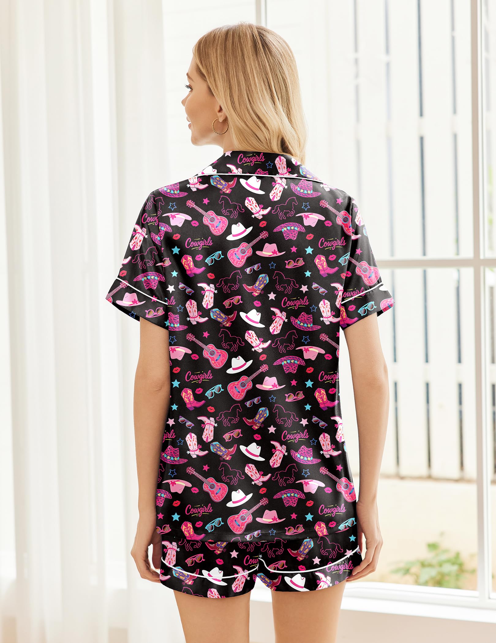 Elegant design:Short sleeve pajama tops, button down front,notch lapel collar and one chest pocket.Matching pajama shorts for women with stretchy elastic waist that fits for any body size.Lightweight and Breathable,perfect for sleeping, lounging, or morning coffee in effortless grace