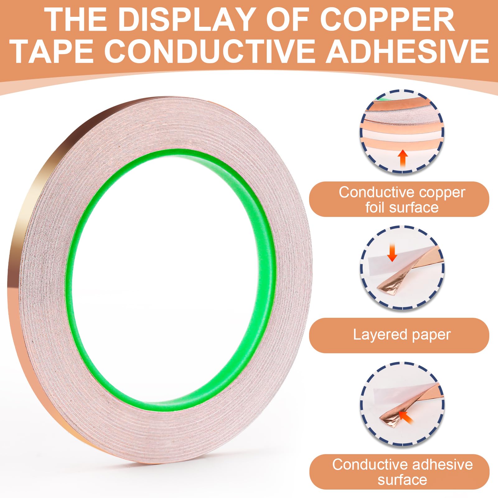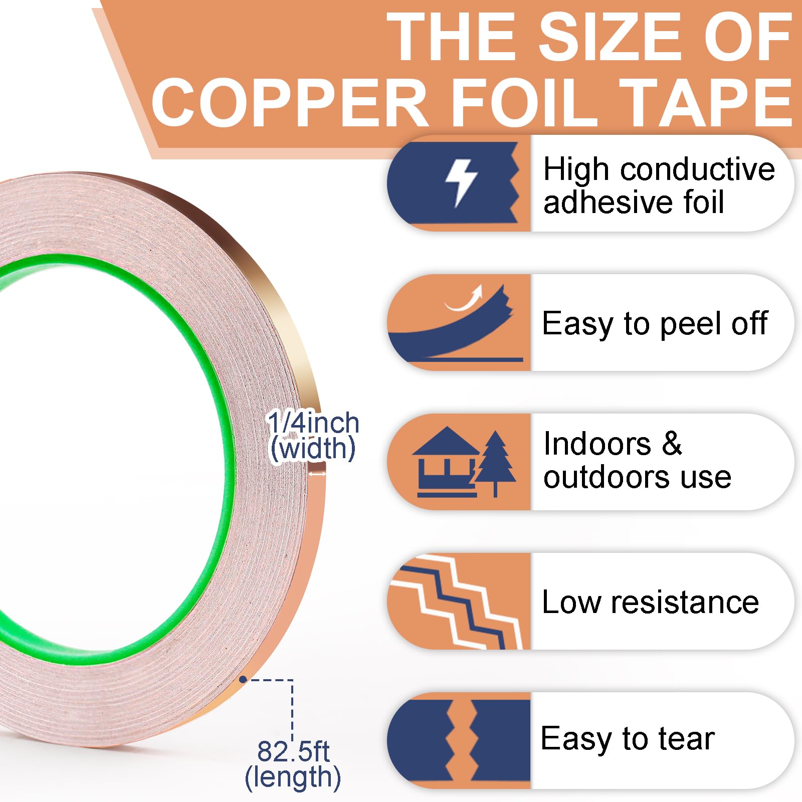 Extraordinary Length: The size of foil tape is 0.25inchx82.5FT. Compared to other products, our copper tape conductive adhesive comes in longer lengths, providing you with more material to complete various projects, without being limited by length.
