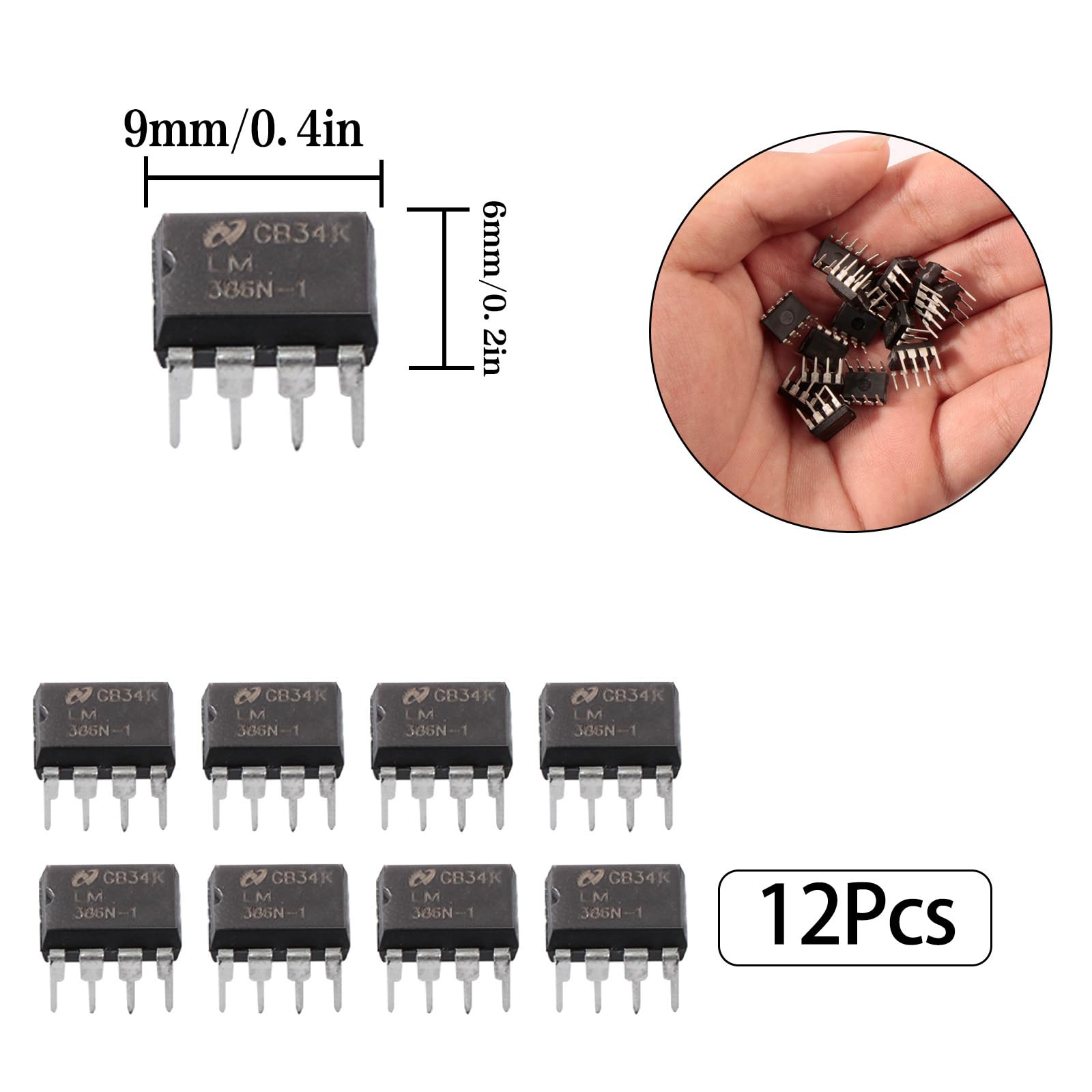 Key Specifications Wide Voltage Range: The LM386N operates with a supply voltage range of 4V–12V or 5V–18V, providing flexibility to be used in both low- and medium-power circuits. Voltage Gain Range: Adjustable voltage gain from 20 to 200, allowing users to easily tailor the amplification level for their specific needs. Package Type: 8-pin IC, designed for simple integration and efficient use in various audio systems. Key Features Battery Operation: The LM386N is designed for low power consumption, making it ideal for battery-powered applications like portable speakers and amplifiers. Minimal External Components: Requires very few additional components, making it easy to implement and reducing the overall cost and complexity of your projects. Internal Frequency Compensation: Ensures stable performance across a wide range of frequencies, minimizing distortion and maximizing sound quality. High DC Voltage Gain: Features a high DC voltage gain unit for strong amplification, making it perfect for audio and sound applications. Applications The FOXTIP LM386N is commonly used in: TV Sound Systems: Amplifies audio signals for TV sound systems, delivering clear, robust audio output. Recorders and Radios: Ideal for portable or home audio recorders, radios, and other audio equipment. Portable Tape Player Amplifiers: Perfect for boosting audio output in compact portable devices such as tape players, portable speakers, and other battery-powered audio systems. Convenient Packaging Easy Storage & Handling: Packaged for simple storage and easy access during your projects. Clear Markings: Printed markings on the IC for easy identification and integration into your designs. Note: Please confirm the specifications before purchasing to ensure compatibility with your project requirements.