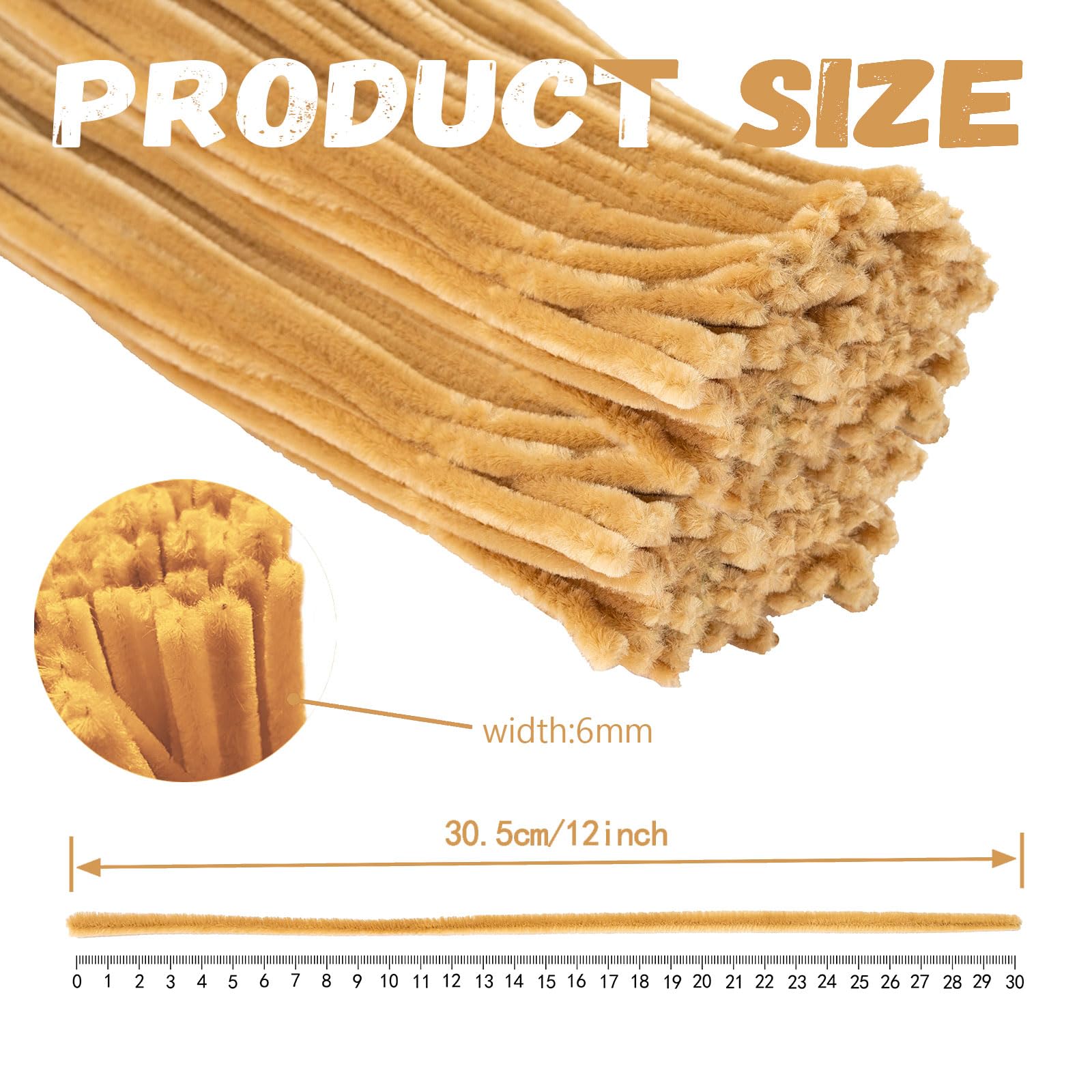[Pipe cleaners Light Brown] The pipes 6mm in diameter, 12inch in length,200pcs of Light Brown pipe cleaners in each package.Nice for making all kinds of pipe cleaner crafts.