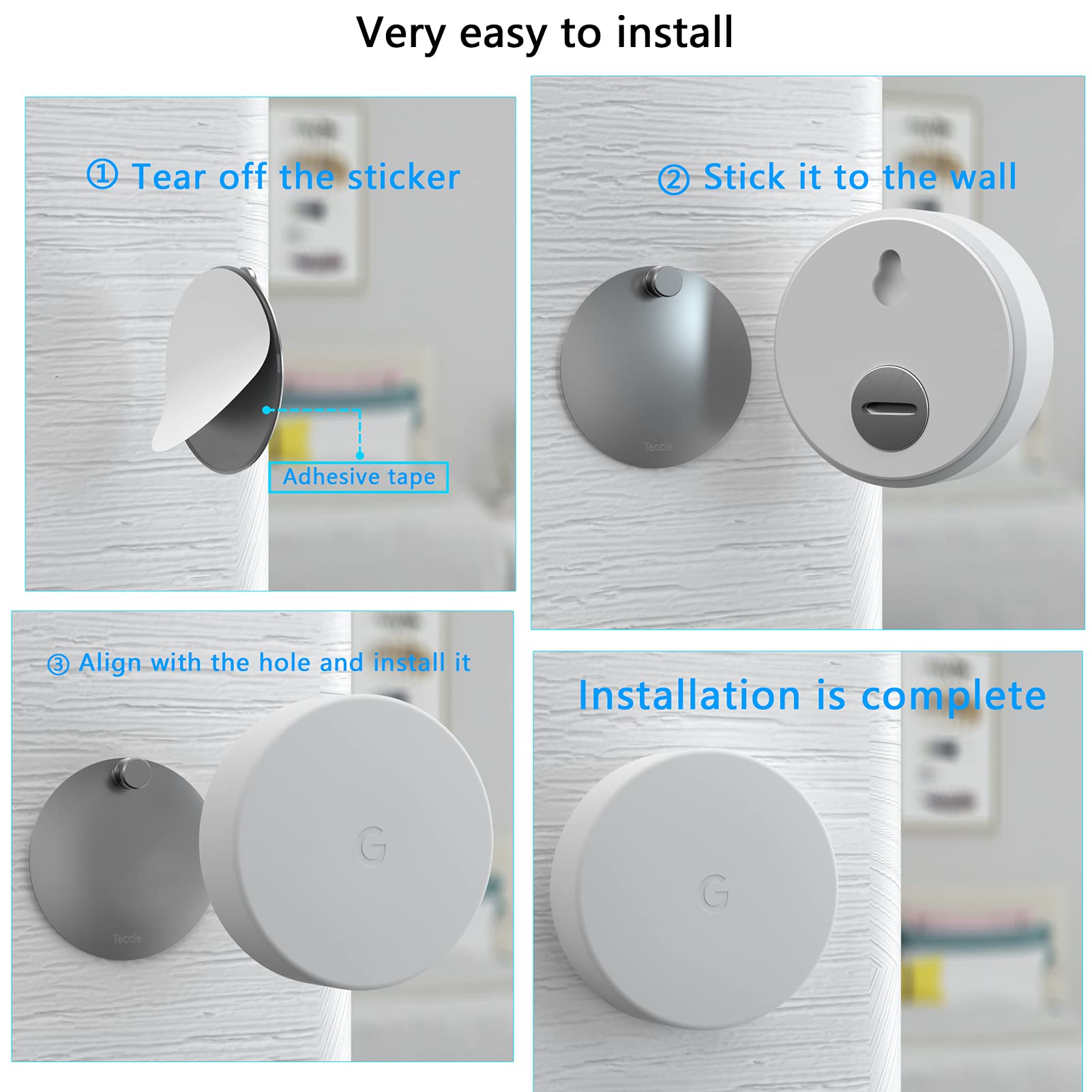 Easy to install Google Nest Sensor Wall Mount——1,Wipe clean the surface to be installed. 2,Tear off the sticker on the back of the bracket. 3 , Align the raised part on the bracket at 12 o'clock,Then press the bracket to the installation position